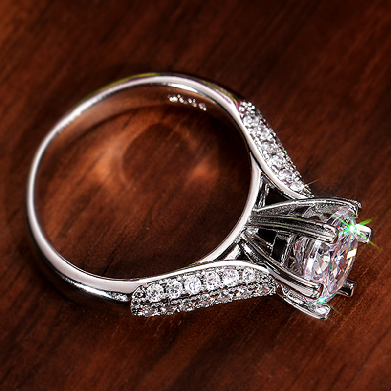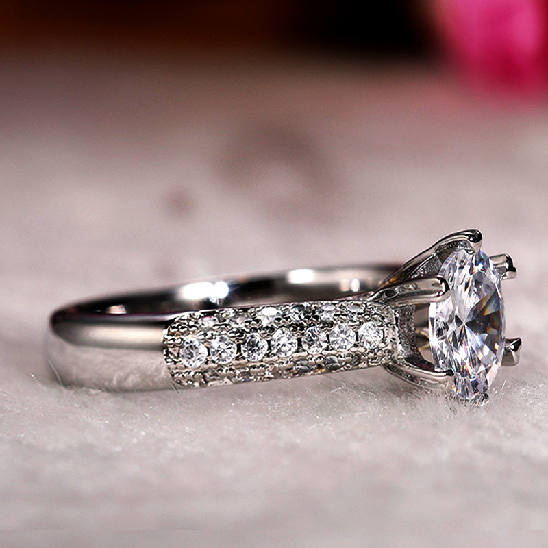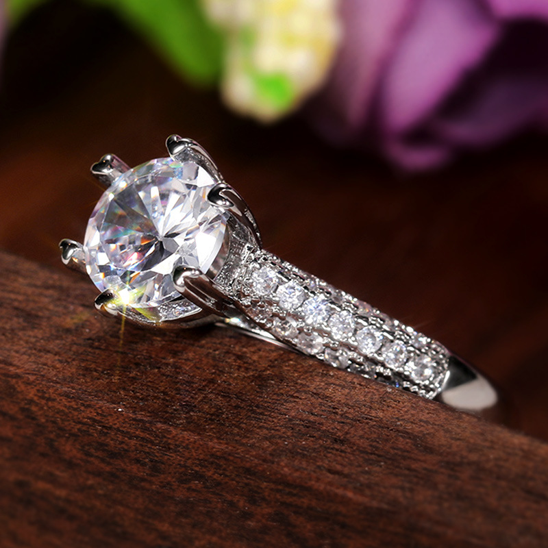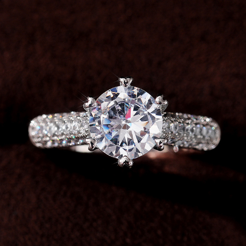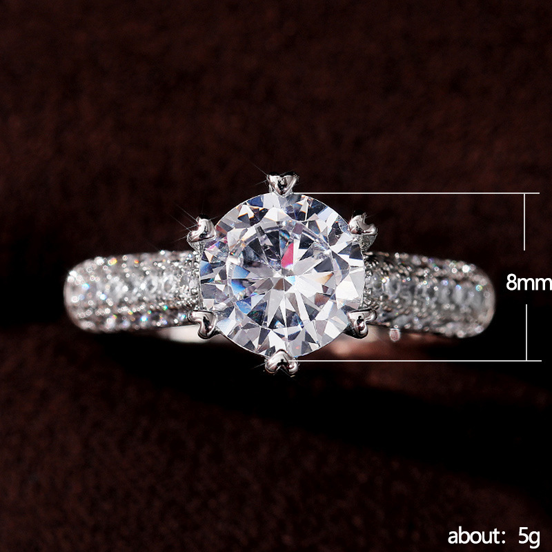 Micro-inlaid celebrity style classic all-match popular ring six-claw zircon wedding ring European and American style light luxury ring