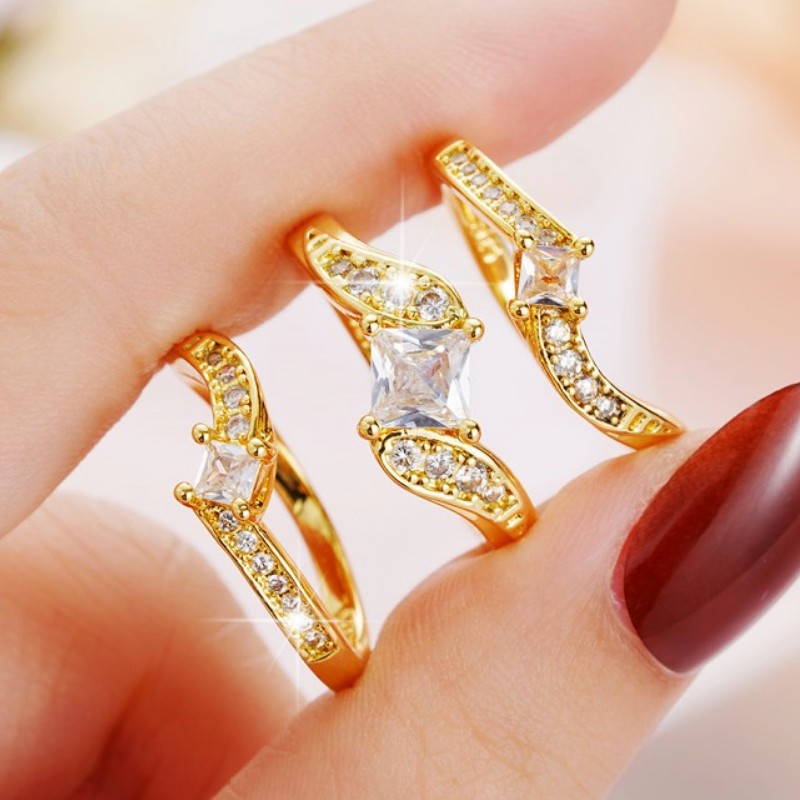 New square simulation zircon ring set European and American micro-inlaid three-set ring engagement ring swing arm curved ring