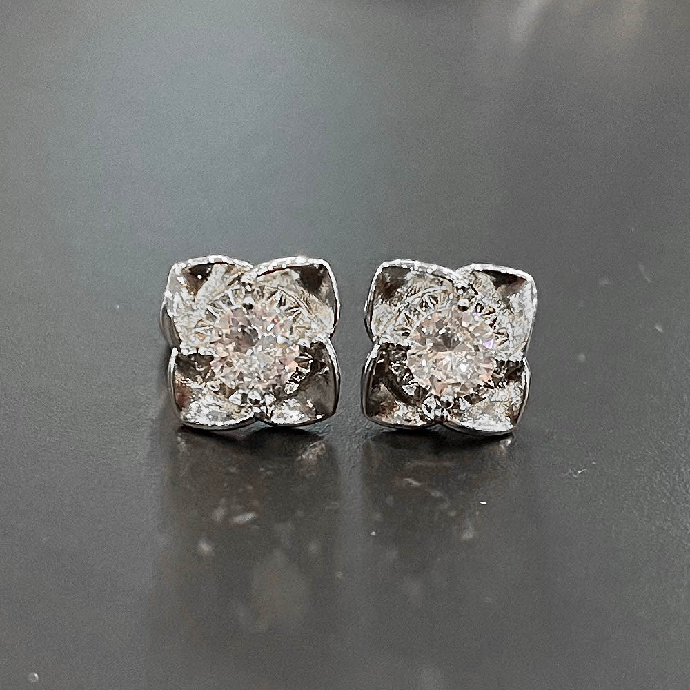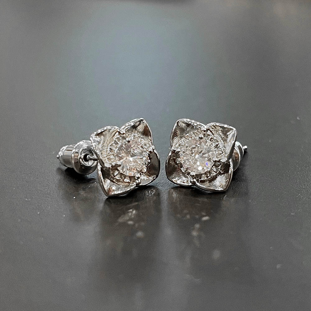 New student diamond bauhinia flower earrings floral zircon mini earrings copper plated white gold jewelry