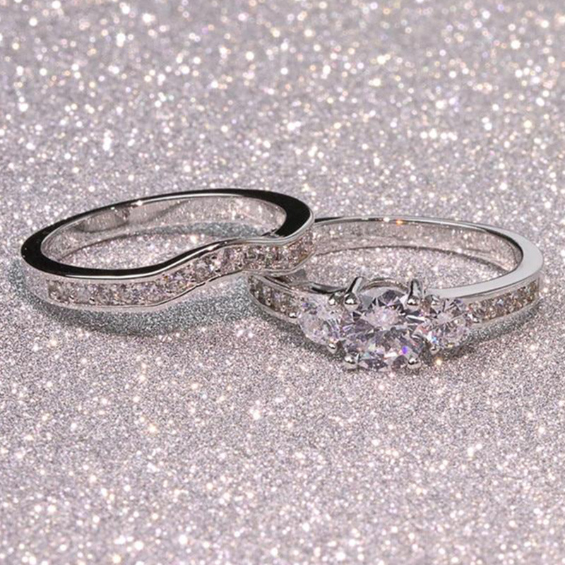 New style couple ring fashion OL simple ladies zircon ring copper plated platinum couple combination ring