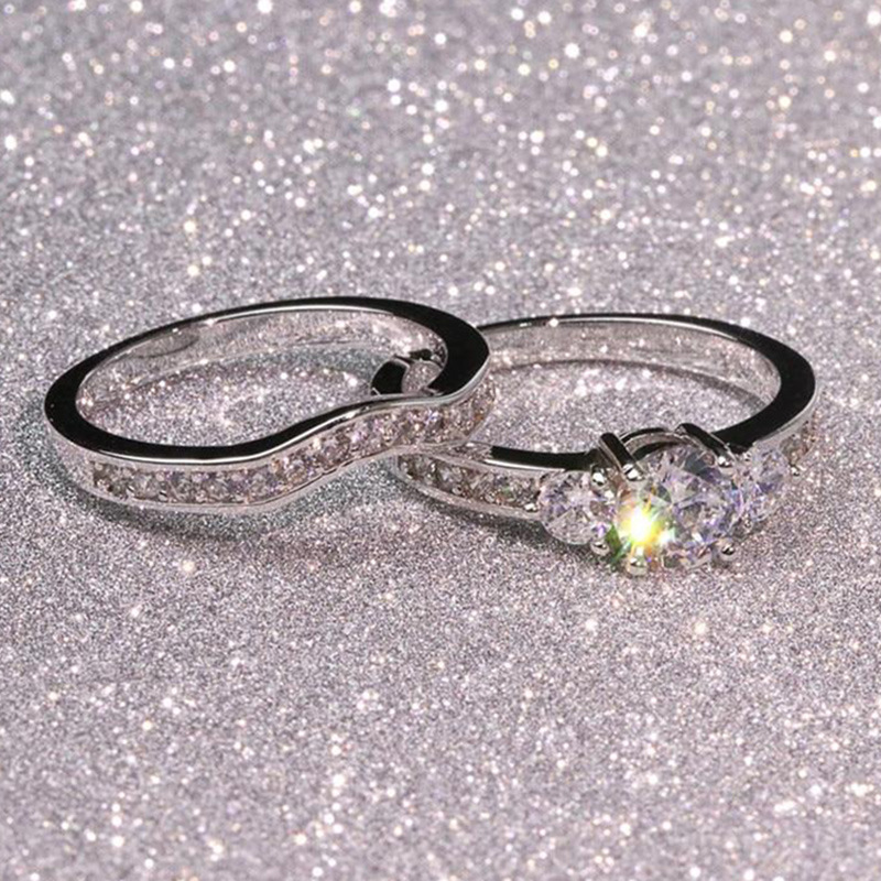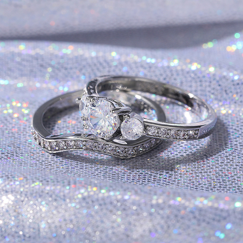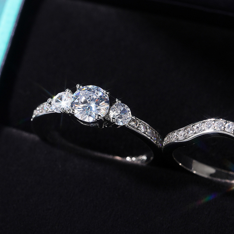 Micro-inlaid celebrity style classic all-match popular ring six-claw zircon wedding ring European and American style light luxury ring