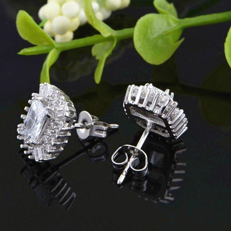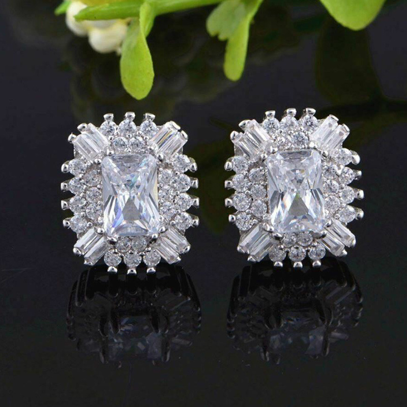 New style earrings copper plated with platinum and full of zircon earrings for women luxury wedding bridal earrings hot sale