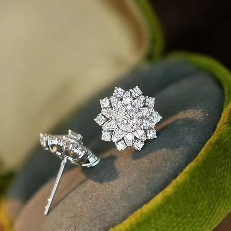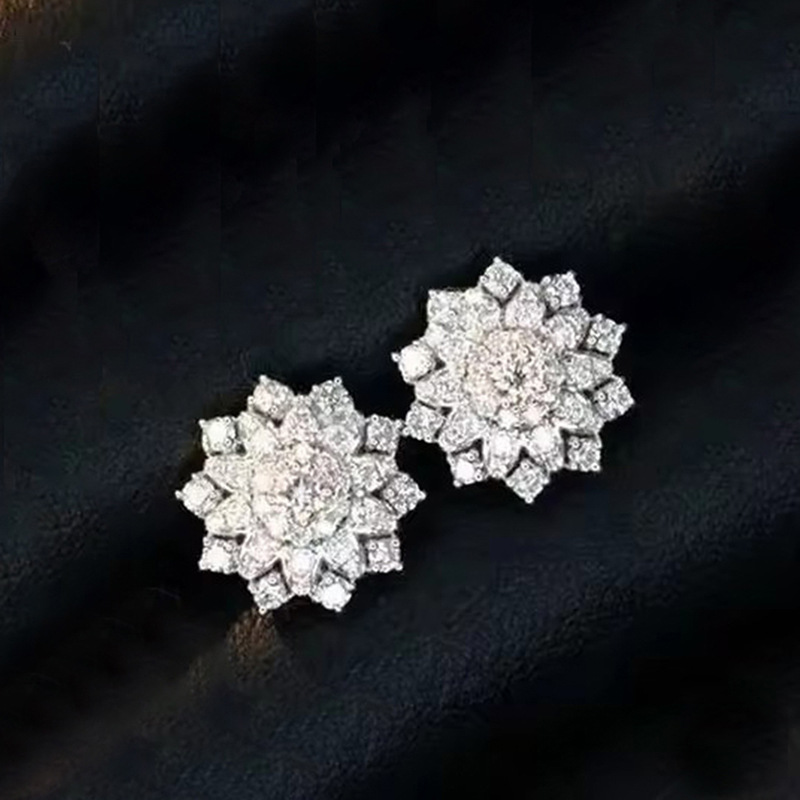 New style earrings for women, flower snowflake exquisite earrings, elegant and sweet, micro-inlaid zircon jewelry