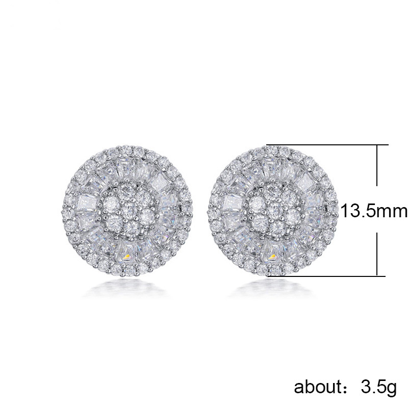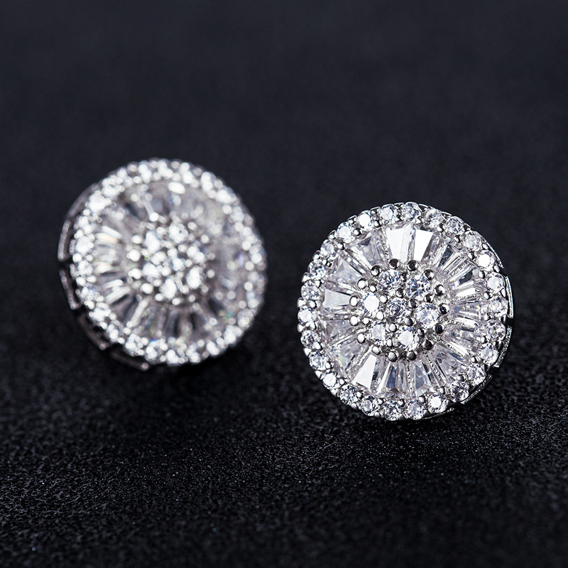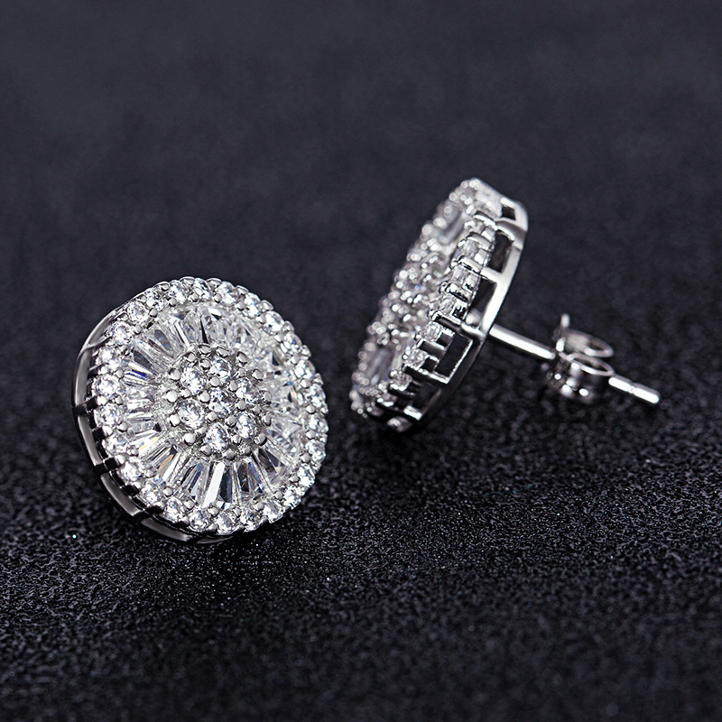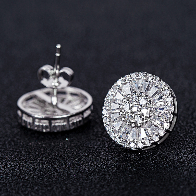 New style earrings wholesale versatile women's full diamond round earrings zircon silver-plated floral earring accessories