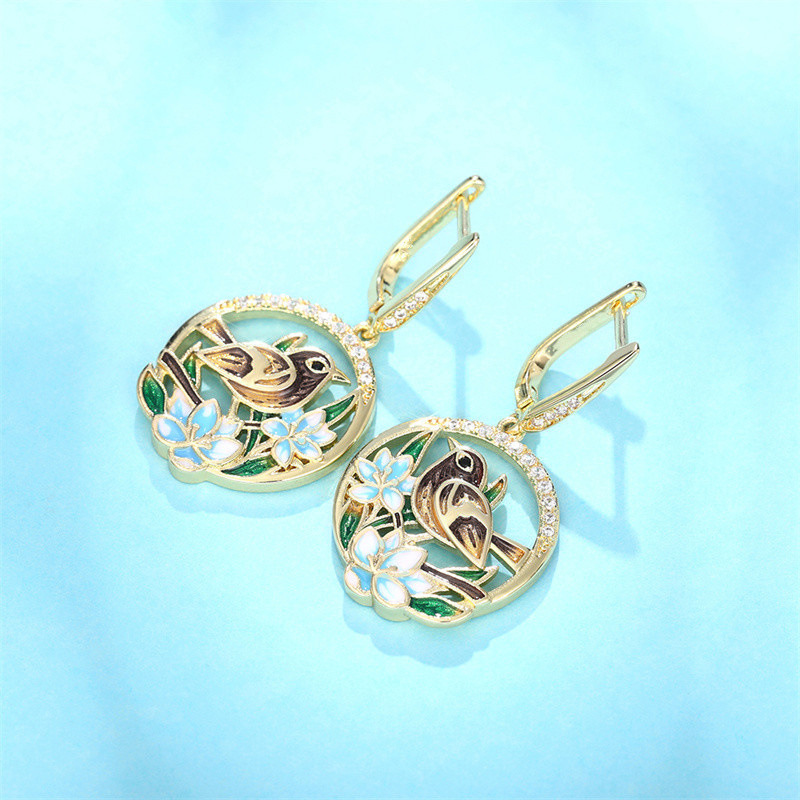 New style earrings with pastoral style, birdsong and flowers, epoxy earrings, handmade enamel earrings, manufacturers wholesale