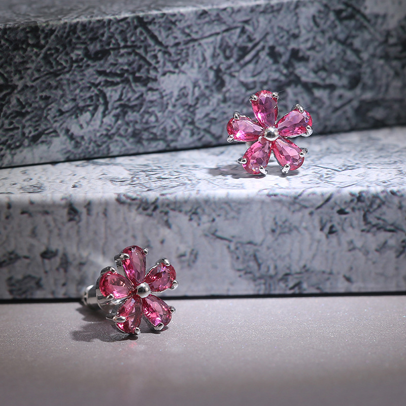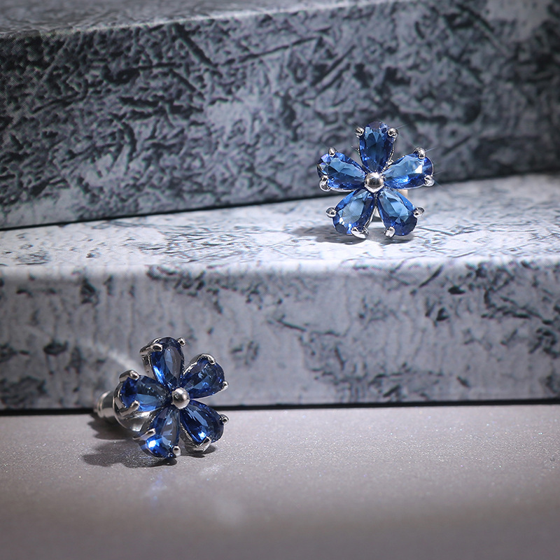 New style fresh Japanese and Korean student style inlaid zircon small flower ladies earrings