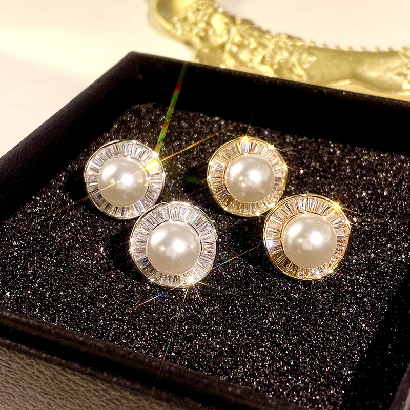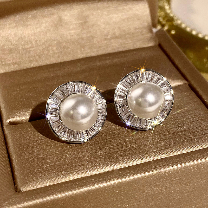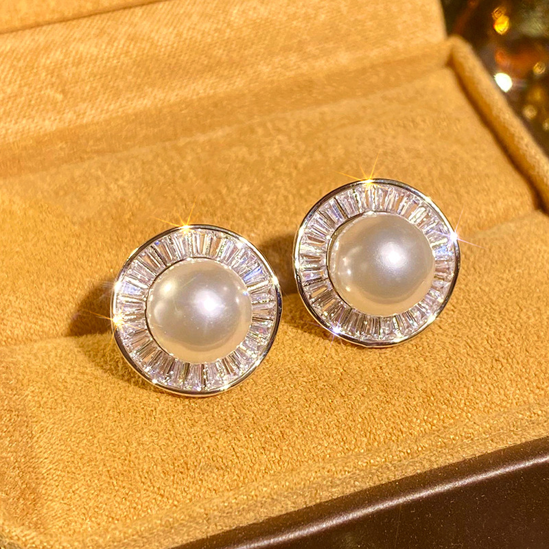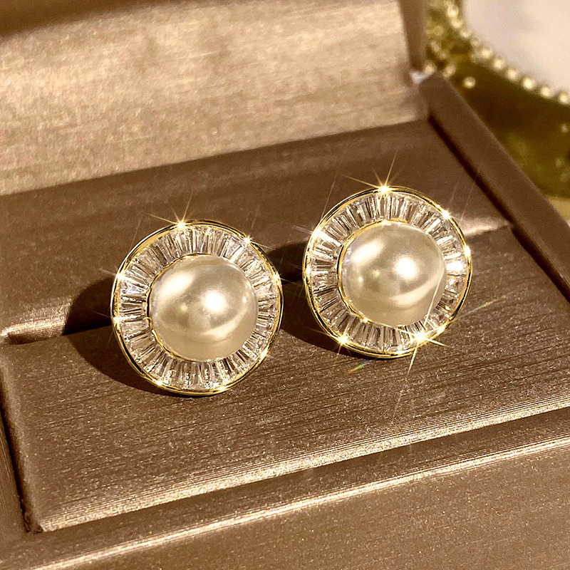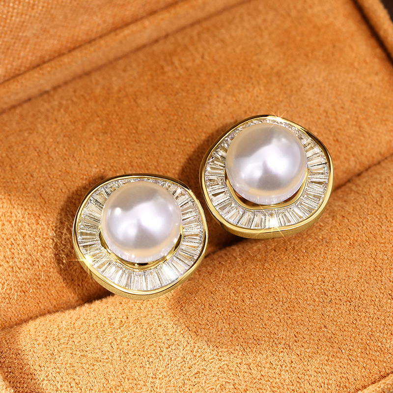 New style gentle small fragrance style earrings for women high-end temperament irregular round earrings imitation pearl earrings