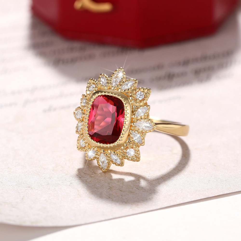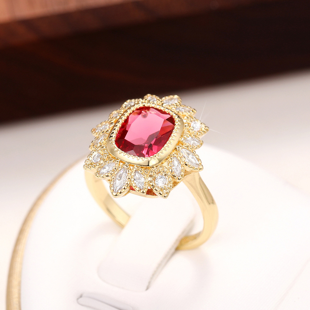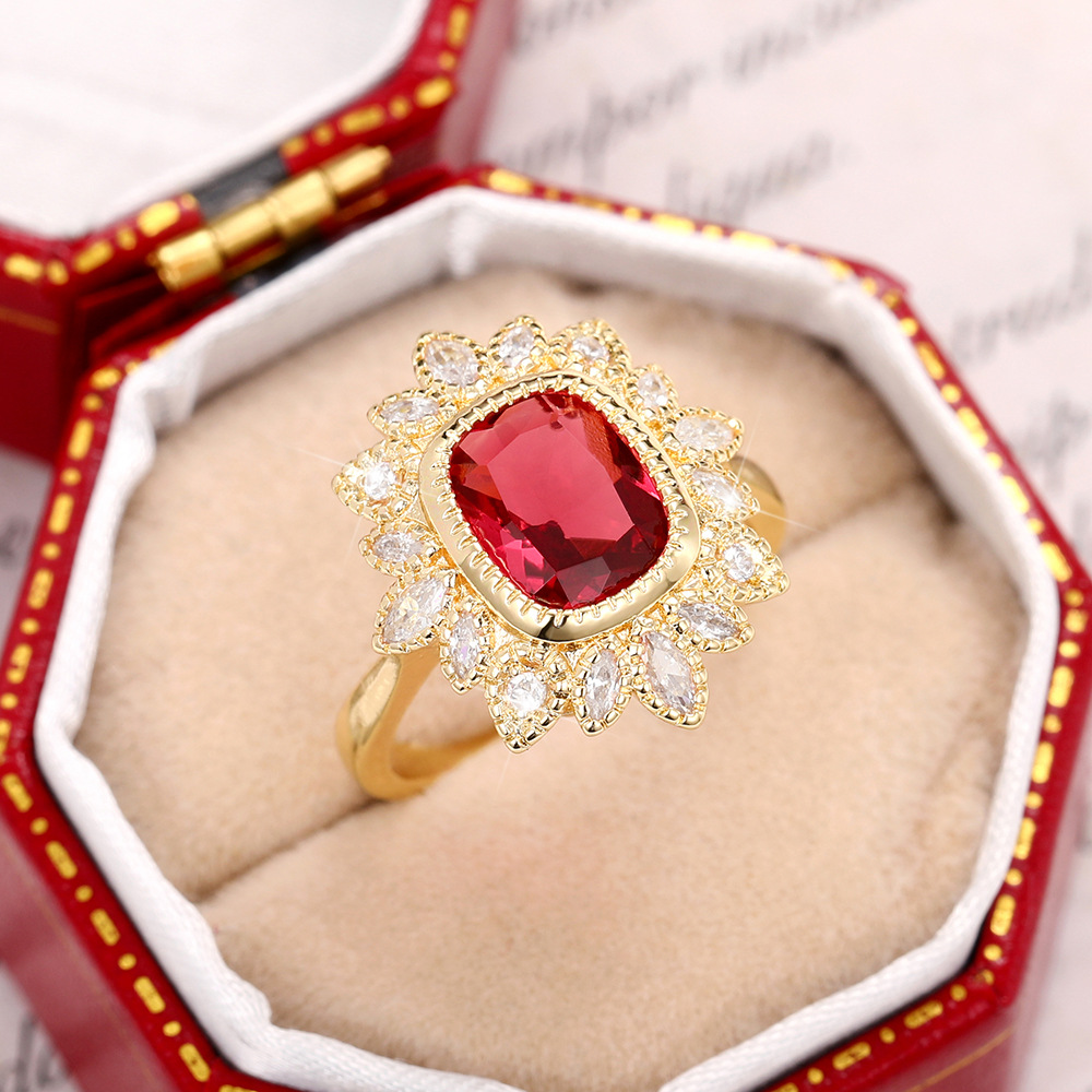 New style hand jewelry creative electroplated gold ring female inlaid red gemstone ring