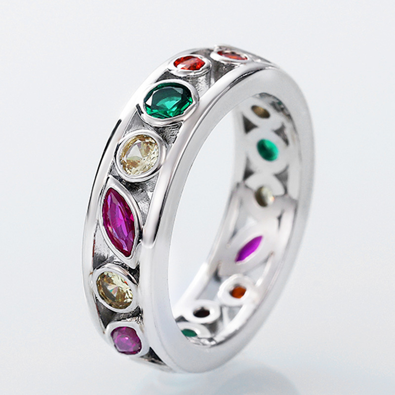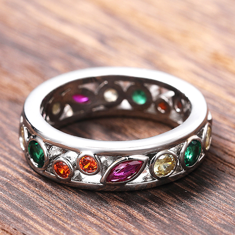 New style hand jewelry hollow diamond multi-color couple ring exquisite simple color zircon ring female