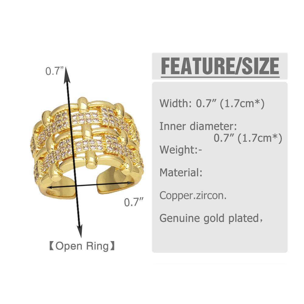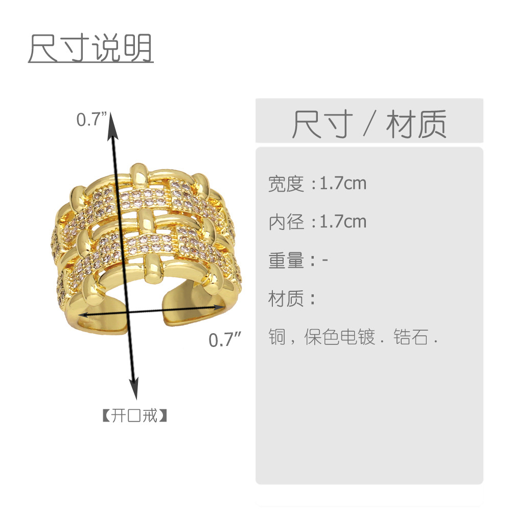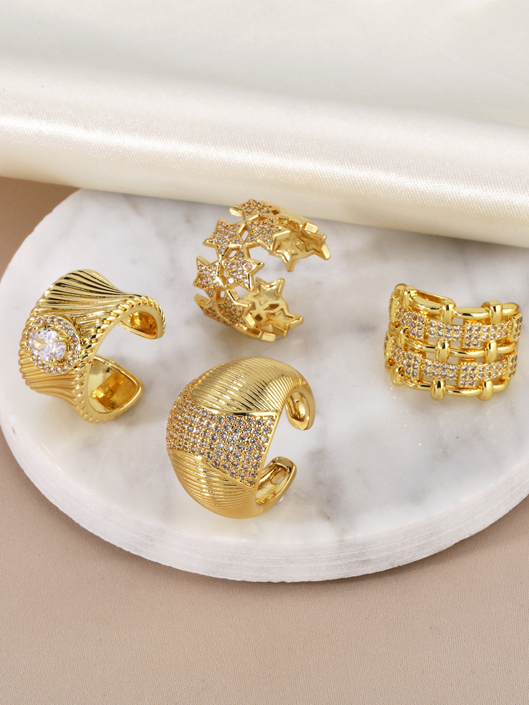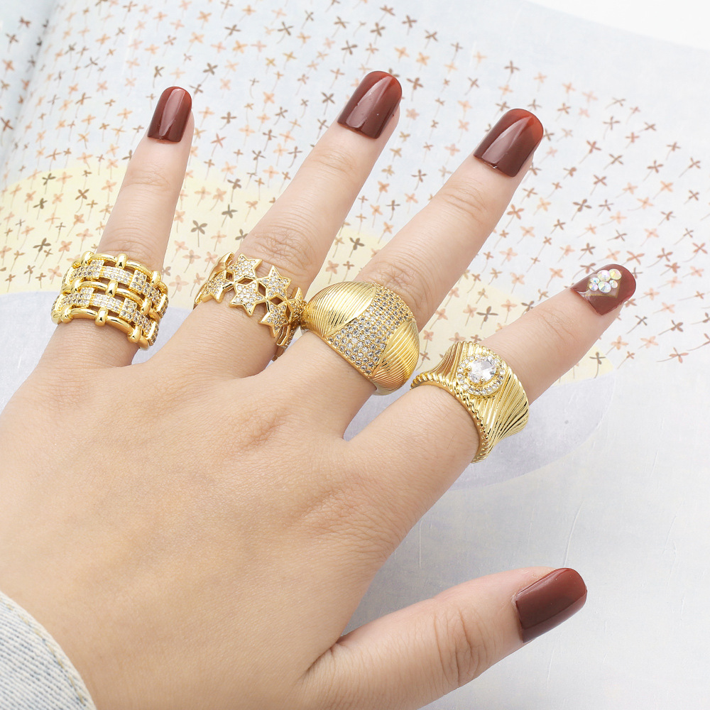 New style inlaid zircon star ring female European and American fashion gold-plated retro geometric open ring rip62