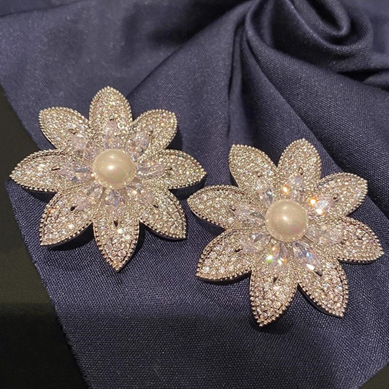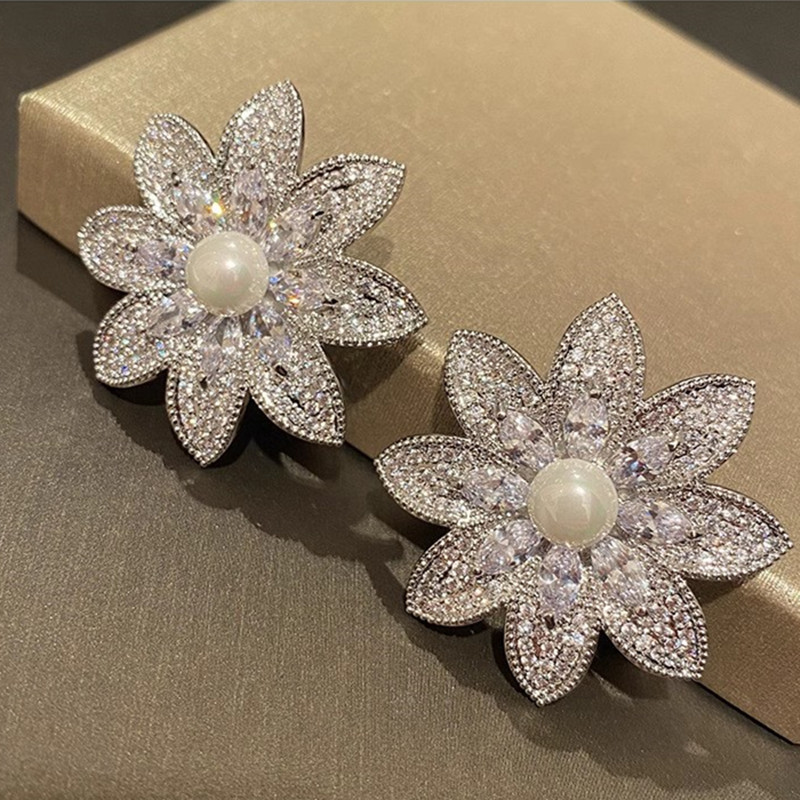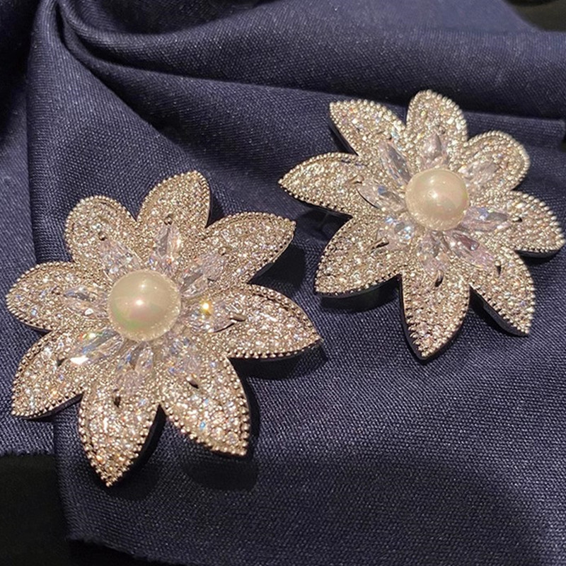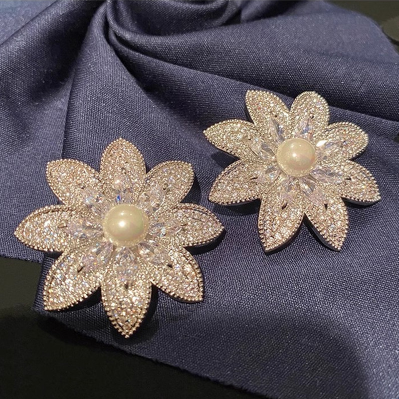New style lady light luxury floral earrings for women exaggerated elegant imitation pearl earrings micro inlaid zircon jewelry
