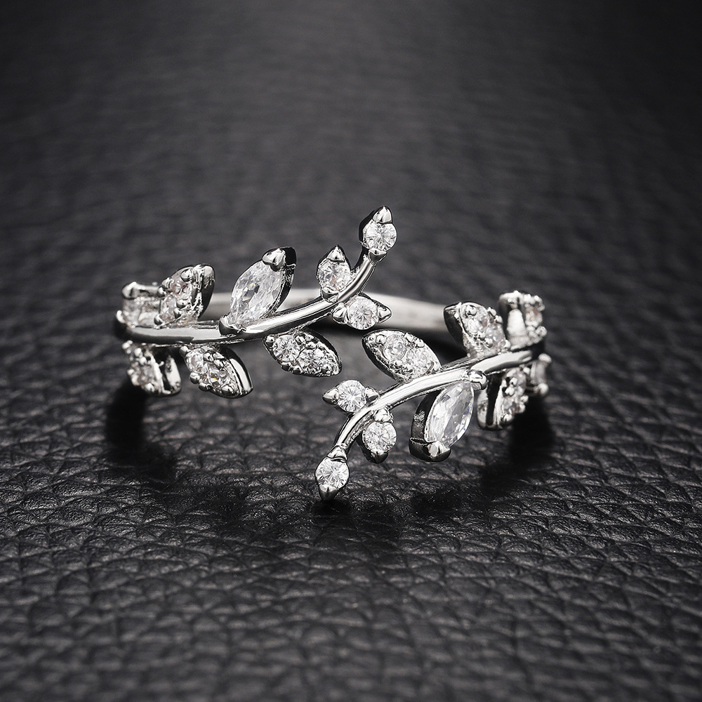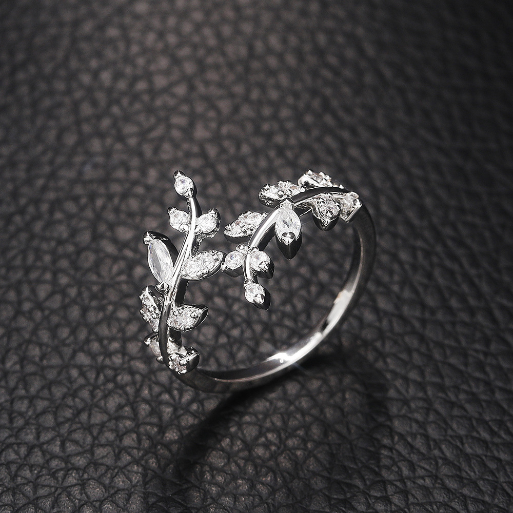 New best-selling super flash ring tree branch bud four-claw inlaid ring light luxury wedding ring for girlfriend