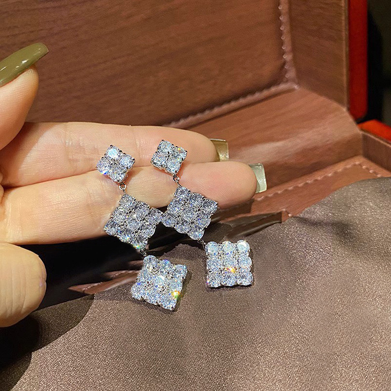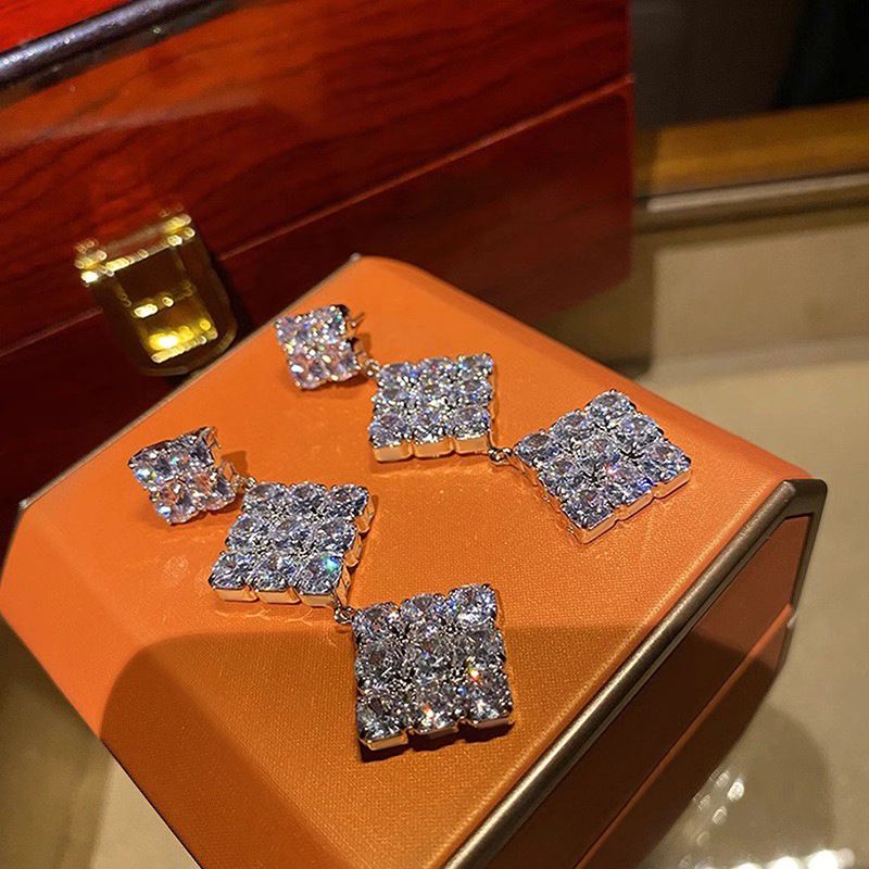 New style micro-inlaid geometric small Chanel style earrings for women, fashionable and elegant earrings, light luxury and high-end jewelry