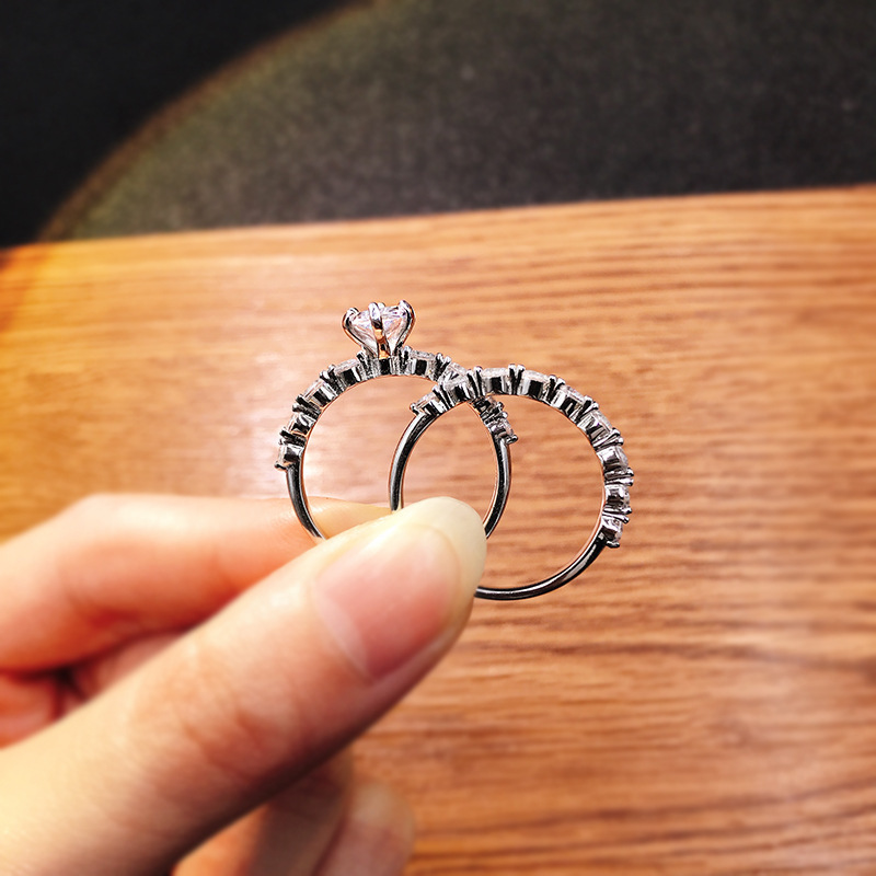 New style ring set, fashionable and high-end full diamond zircon ring two-piece set, jewelry manufacturer wholesale