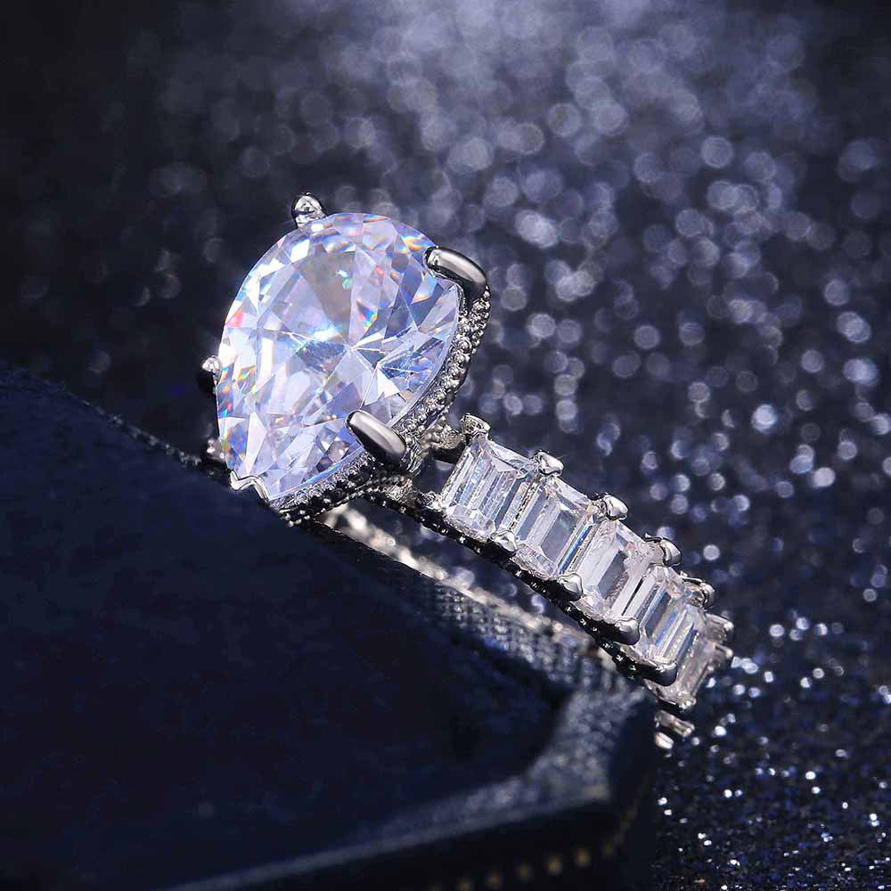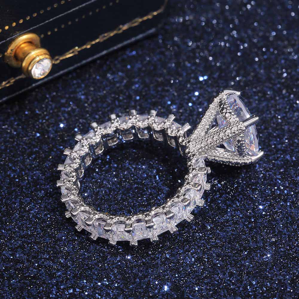 Micro-inlaid celebrity style classic all-match popular ring six-claw zircon wedding ring European and American style light luxury ring