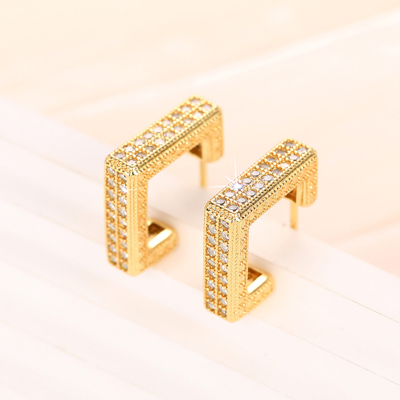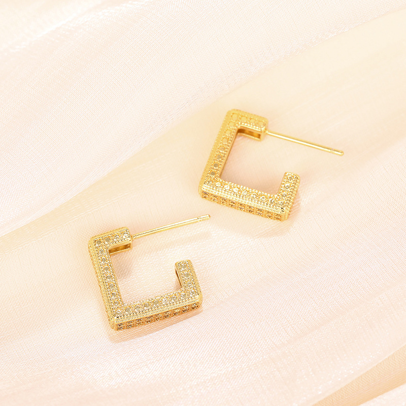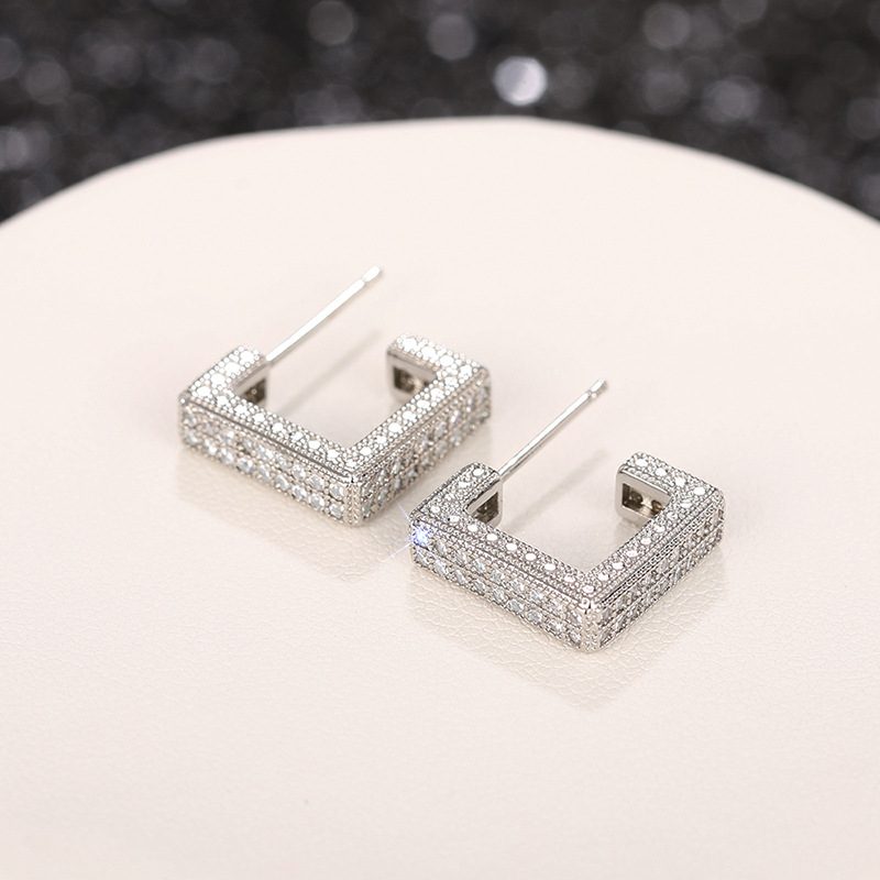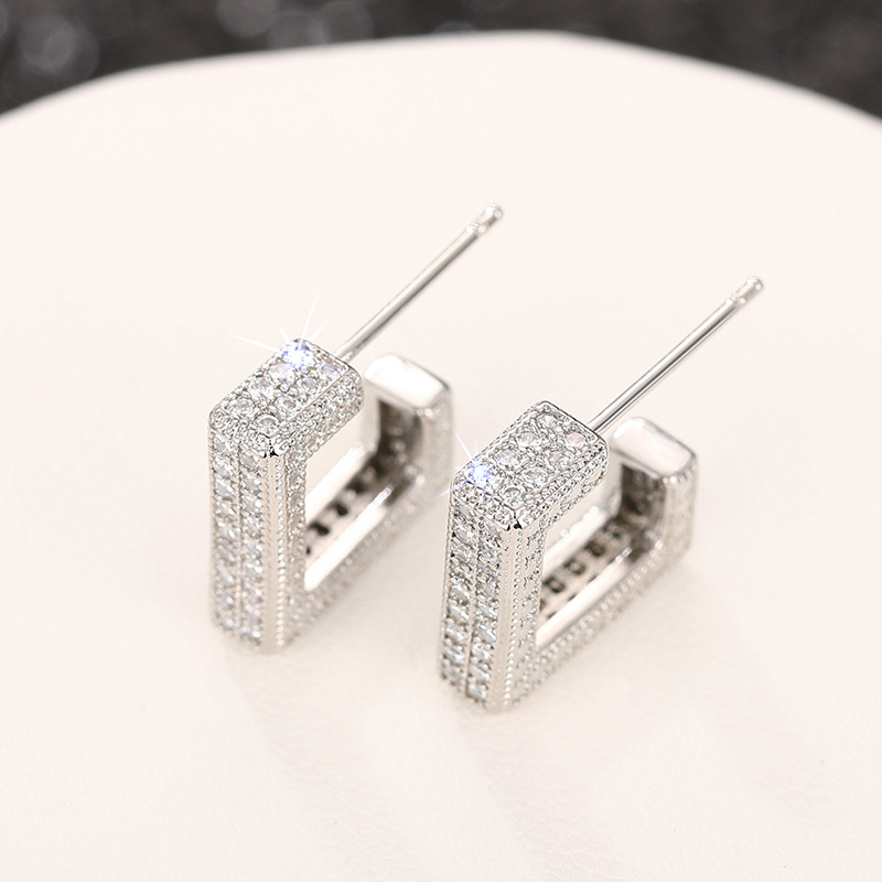 New style trendy micro-inlaid diamond earrings heavy-duty super-shiny geometric high-end earrings luxury square earrings for women