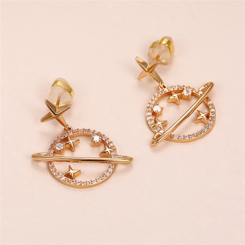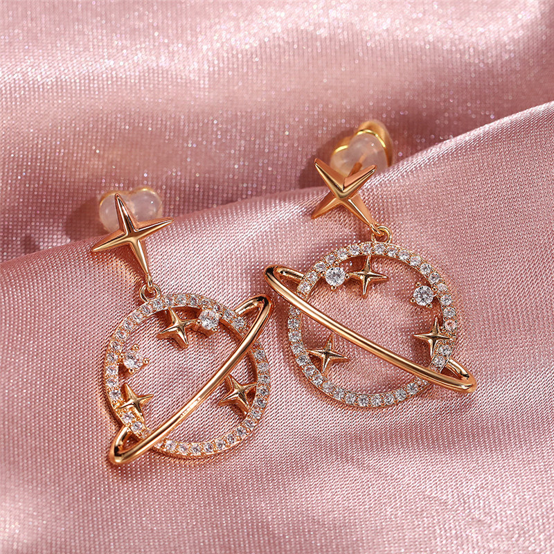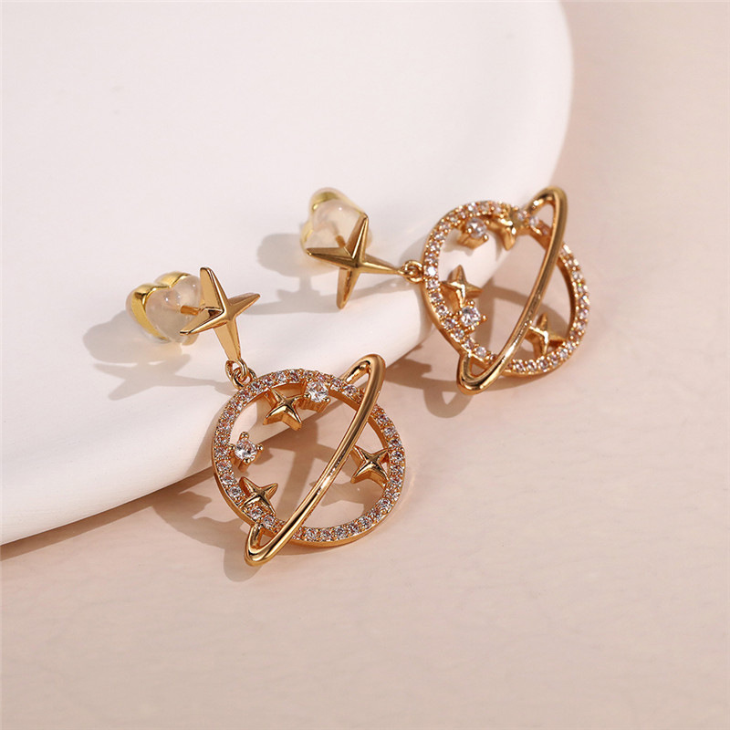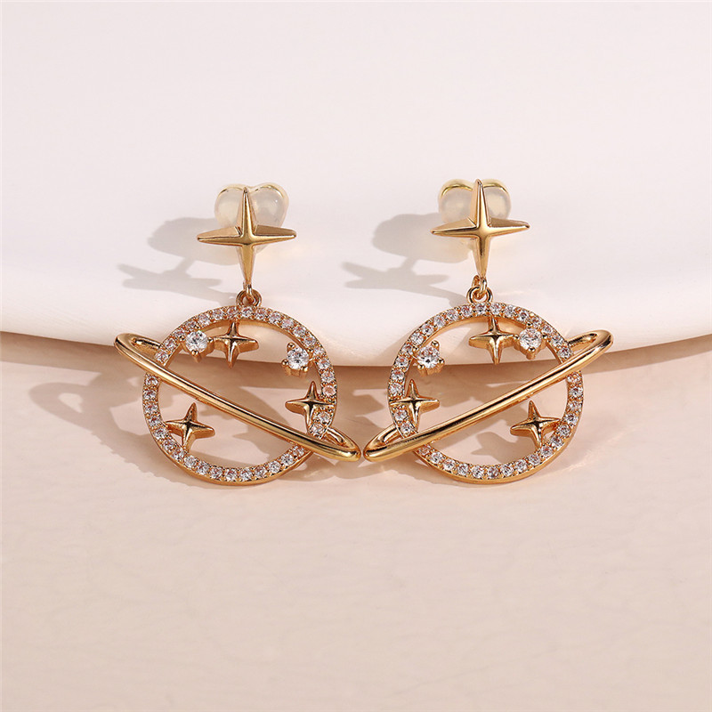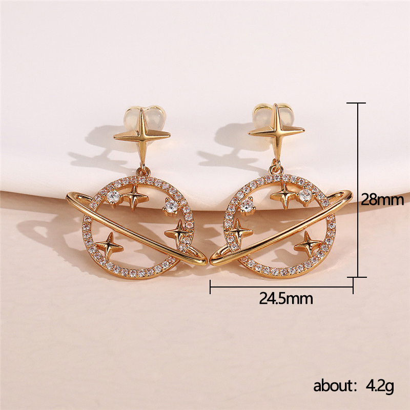 New style trendy temperament net red earrings high-end planet pendant earrings niche design star earrings