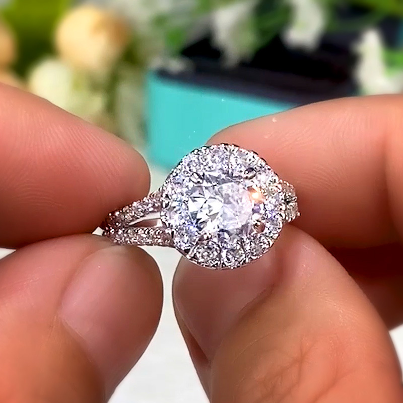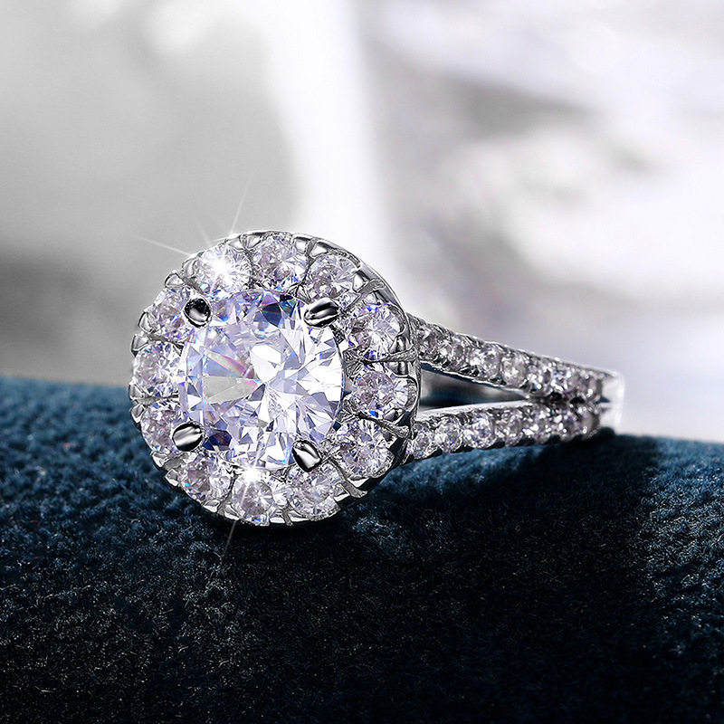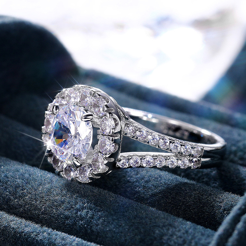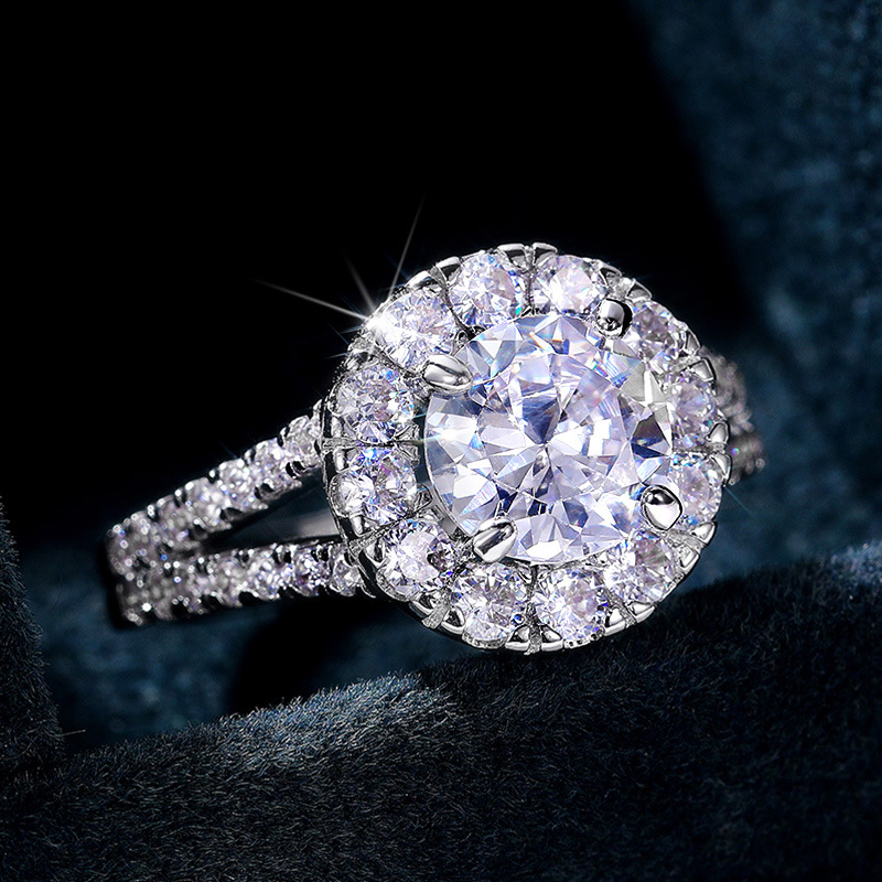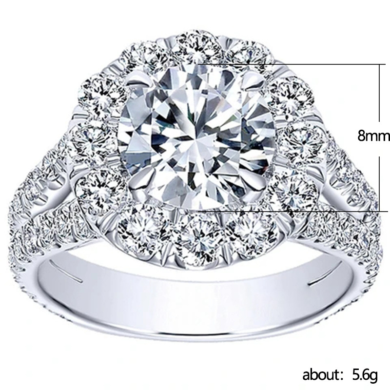 New super shiny micro-inlaid round simulated zircon ring European and American zircon engagement ring