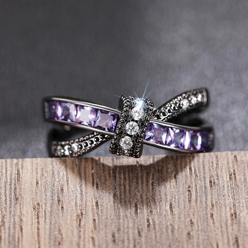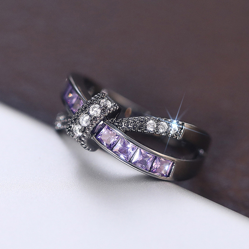 New sweet cool girl must-have ring female black purple niche personality jewelry double-layer design