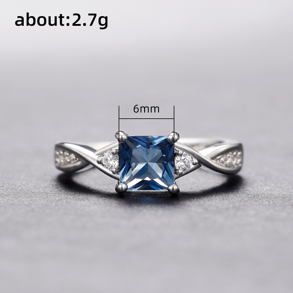 New temperament simulation square blue topaz ring female live broadcast network celebrity hot selling zircon hand jewelry