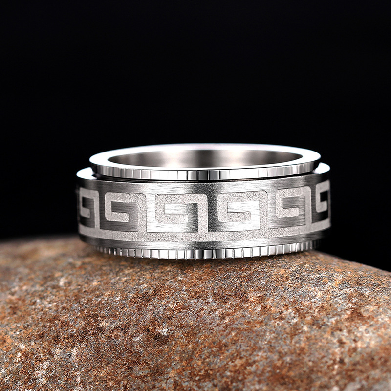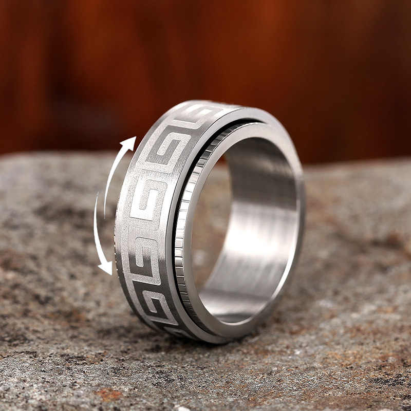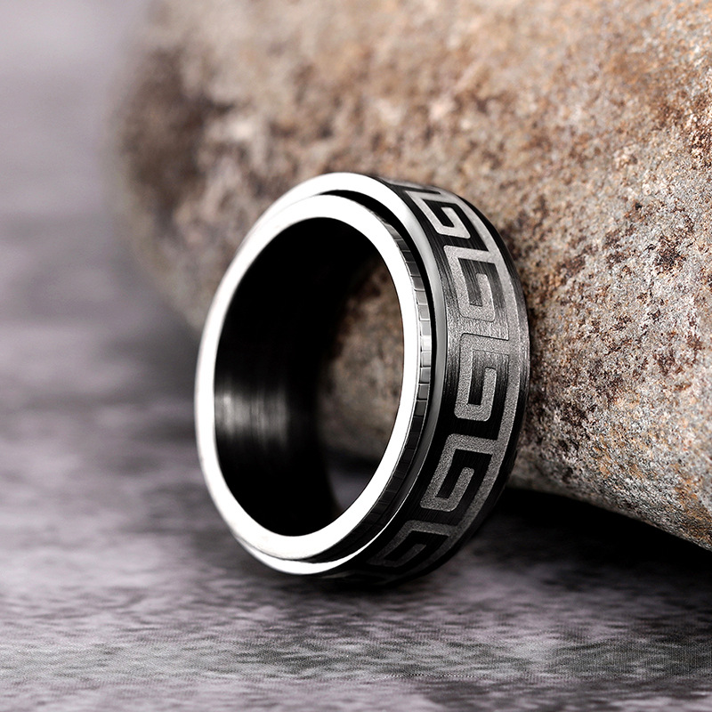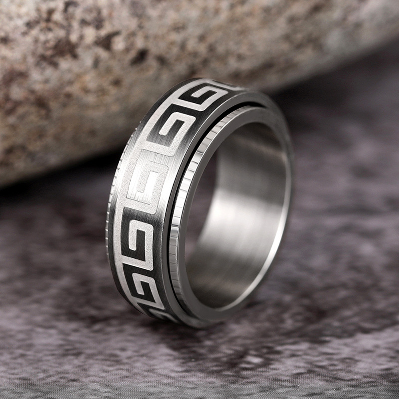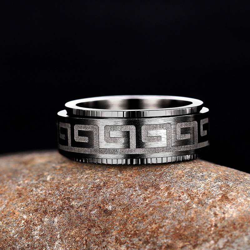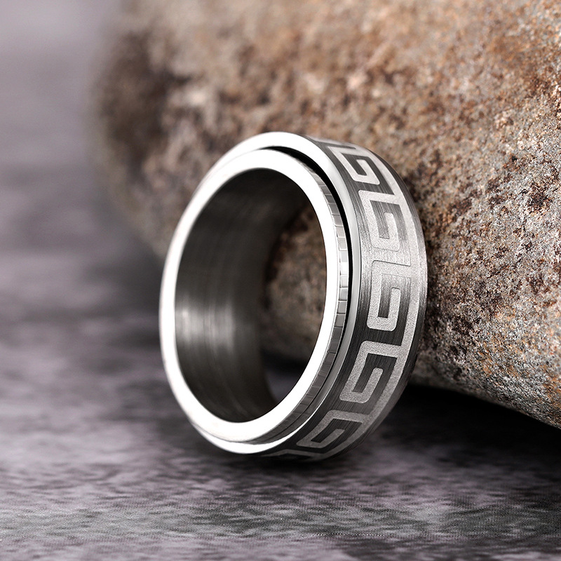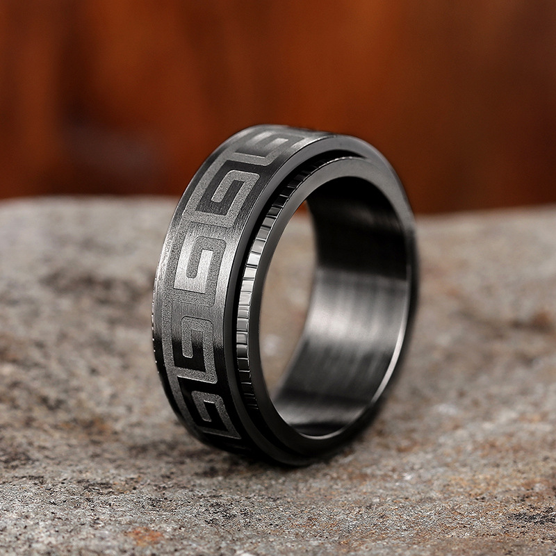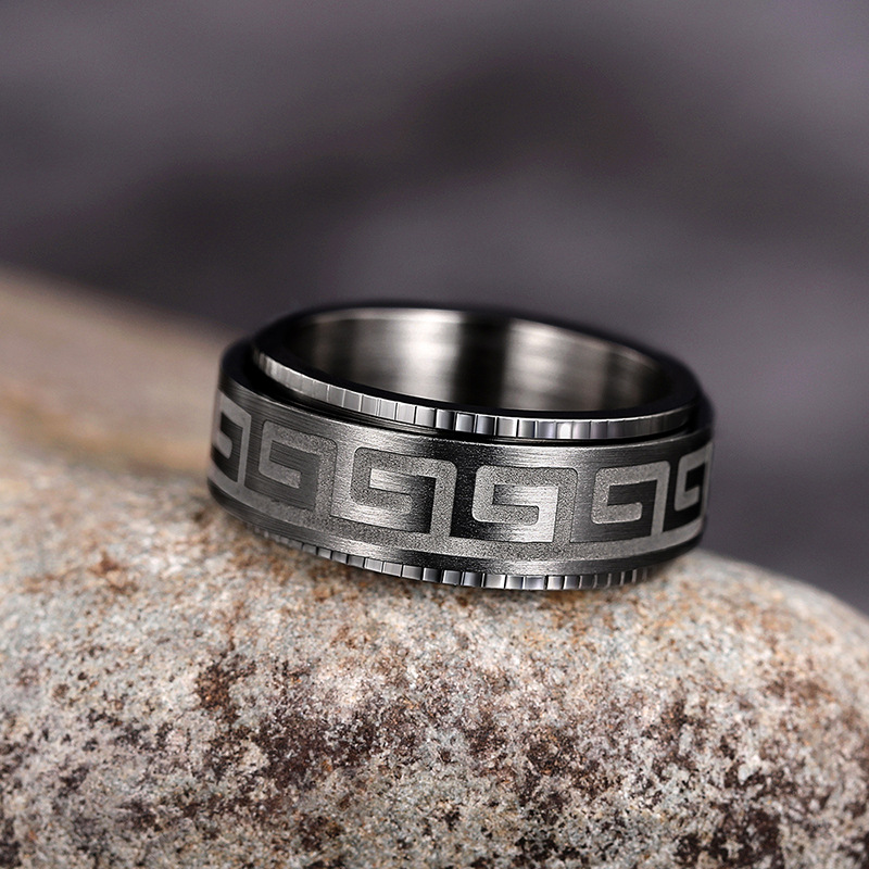 New texture pattern ring light luxury rotatable design ring personality trend dark style
