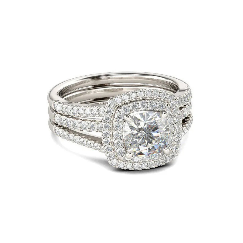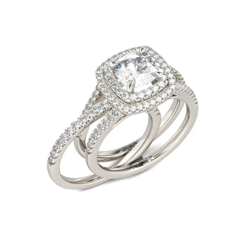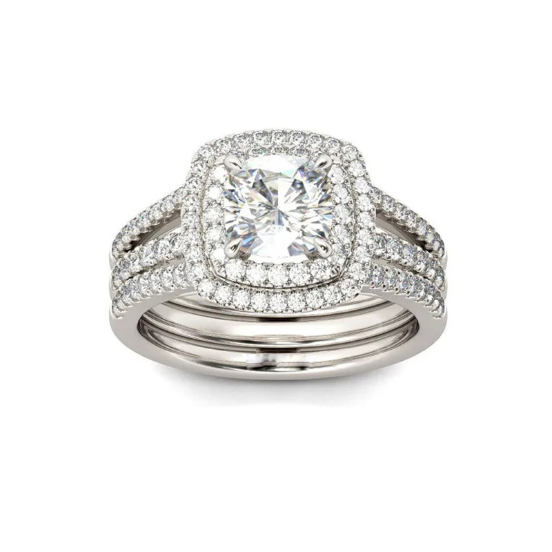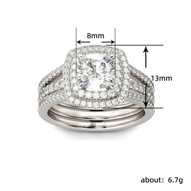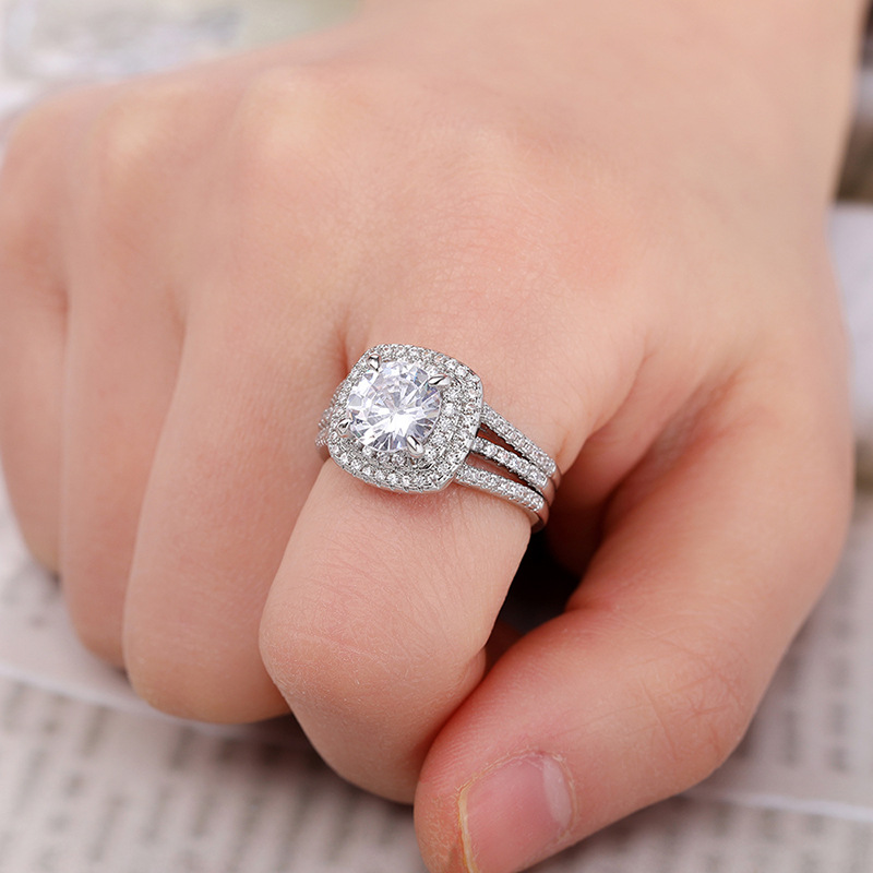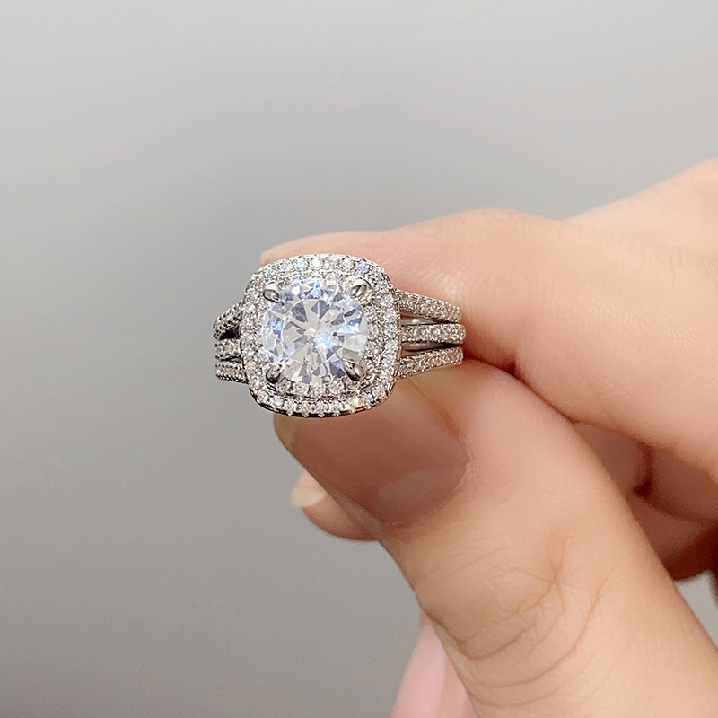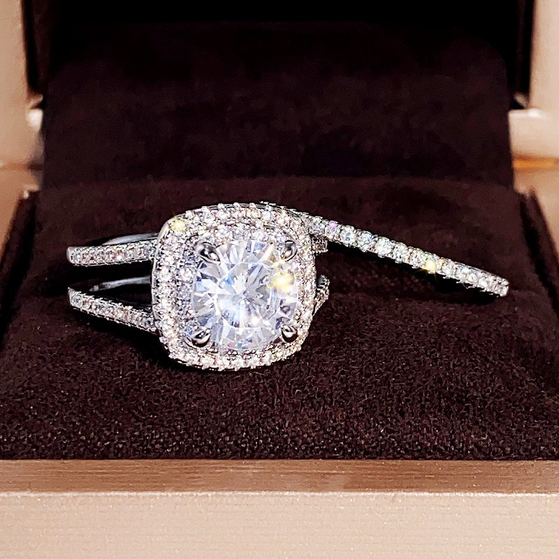 New white gold simulated diamond ring couple's ring European and American double layer super flash zircon ring set ring