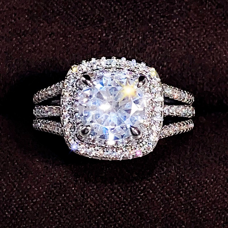 Micro-inlaid celebrity style classic all-match popular ring six-claw zircon wedding ring European and American style light luxury ring