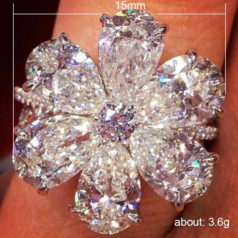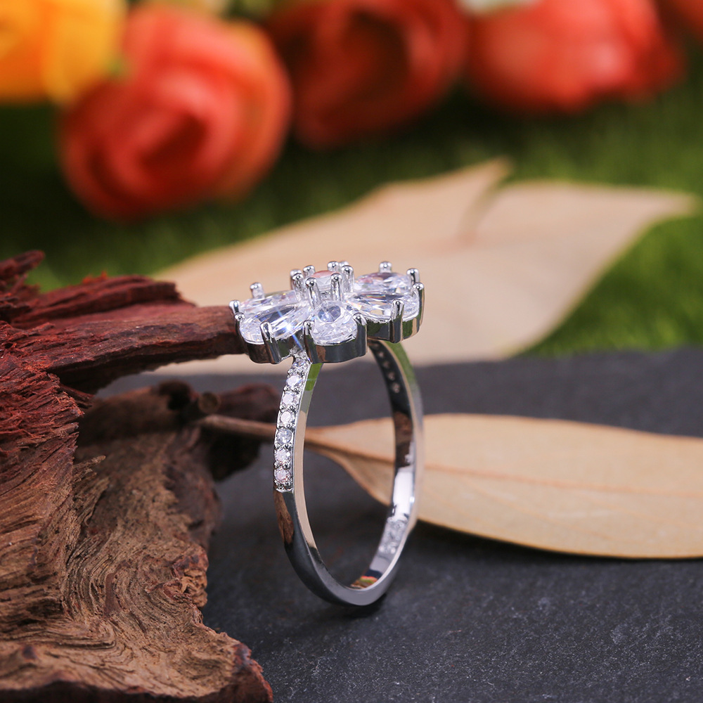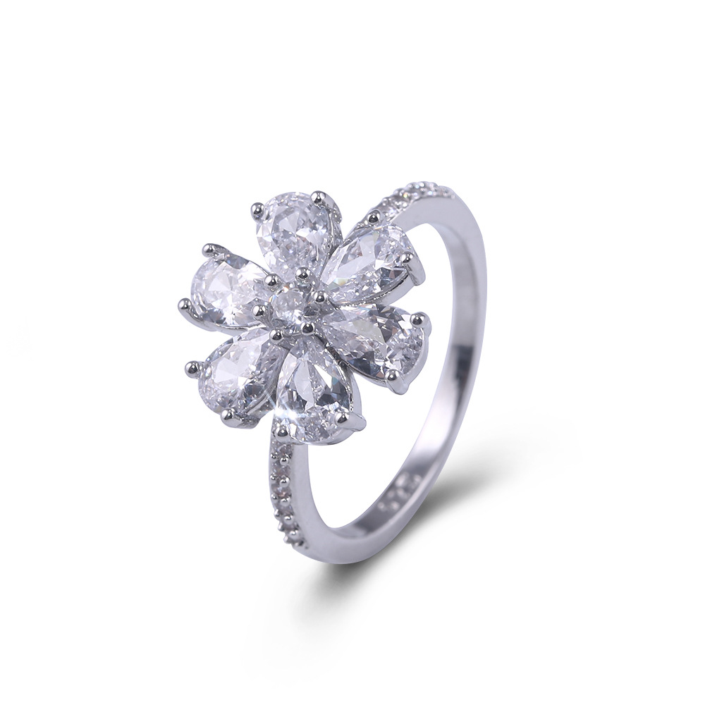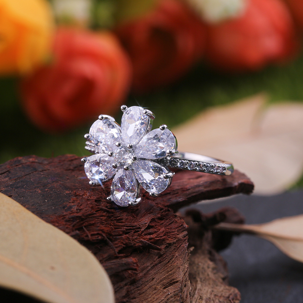 New white zircon inlaid teardrop pear-shaped ring European and American ladies snow flower Christmas ornaments