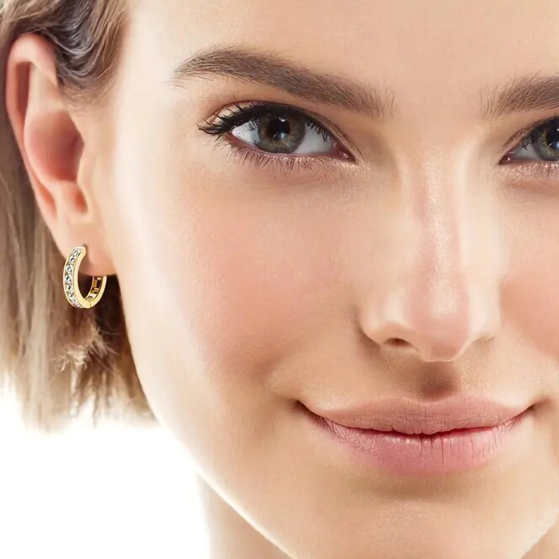 New women's hoop earrings with geometric diamonds, elegant and fashionable earrings for daily wear