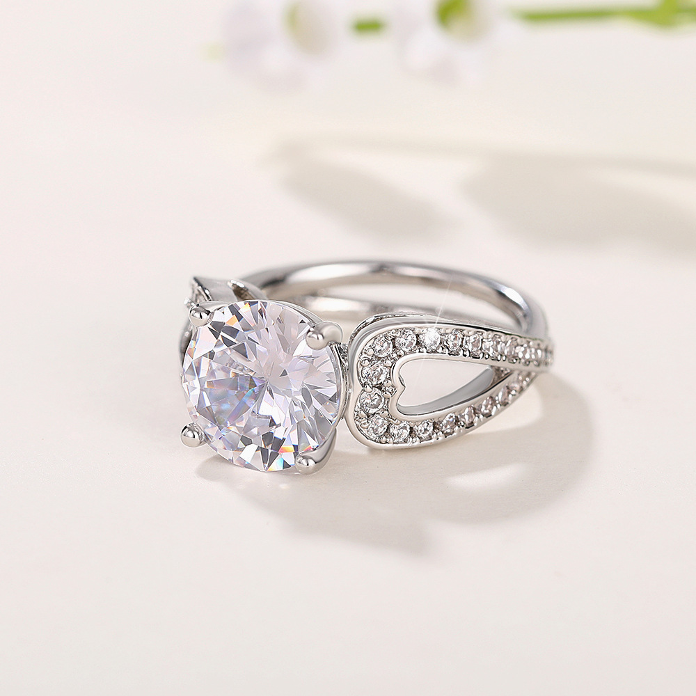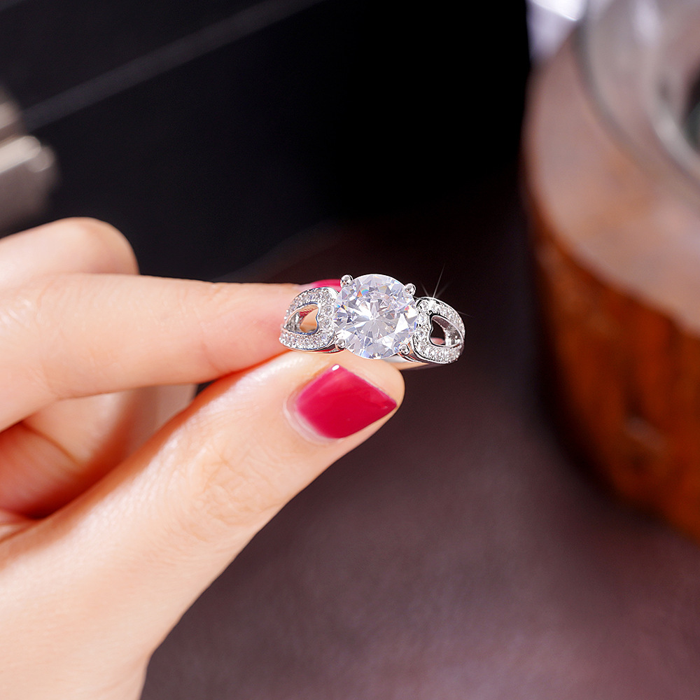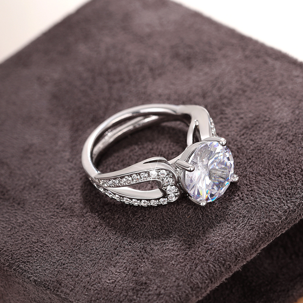 Micro-inlaid celebrity style classic all-match popular ring six-claw zircon wedding ring European and American style light luxury ring