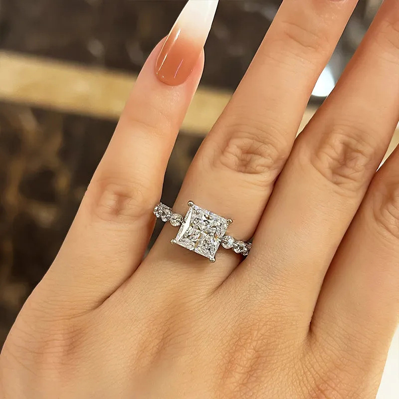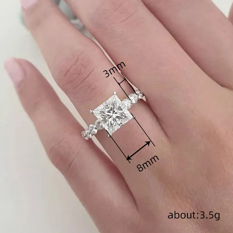 New zircon square diamond luxury ring high-end sense of the Internet celebrity super flash ring engagement proposal anniversary ring