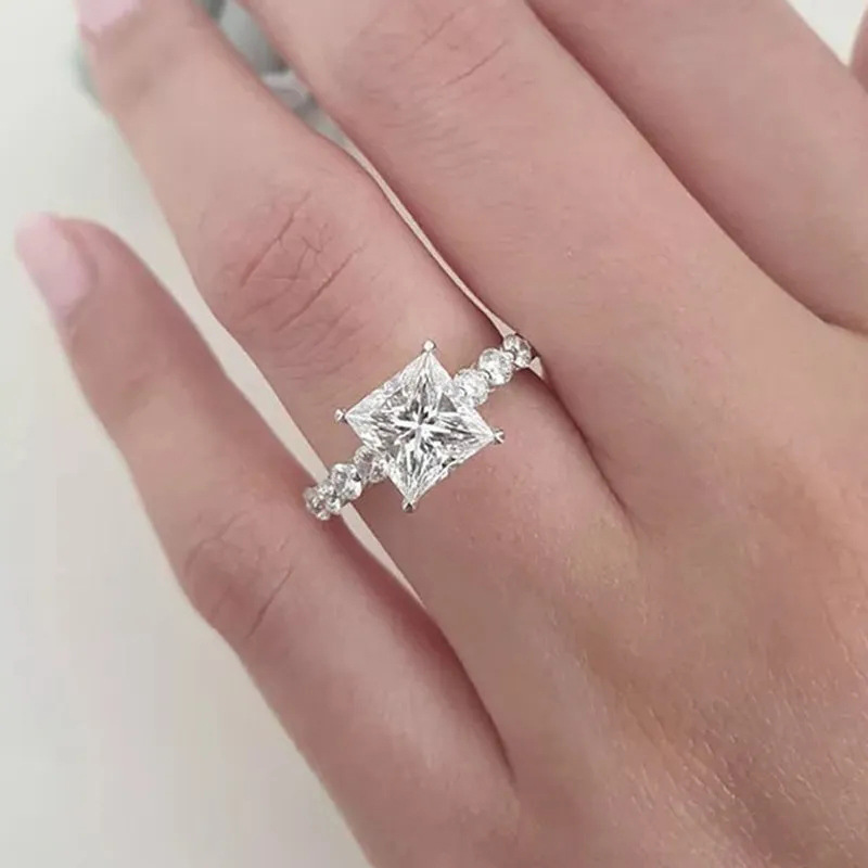 Hot selling new princess square ring European and American hot style inlaid zircon women's jewelry engagement proposal ring