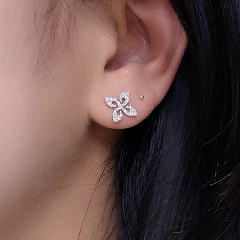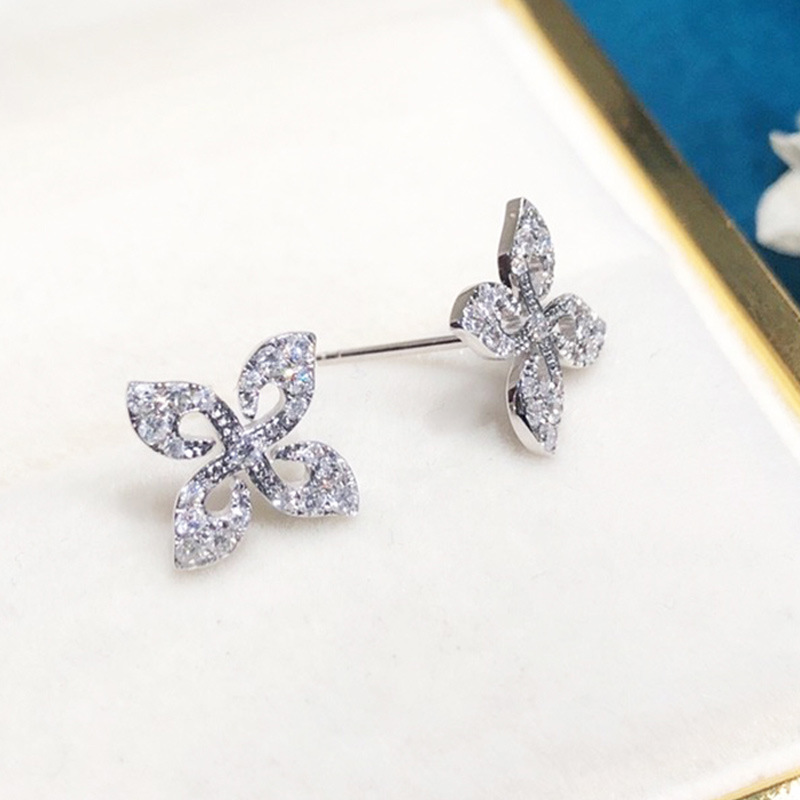 Niche design earrings sweet goddess exquisite full diamond floral earrings super fairy flower ladies earrings