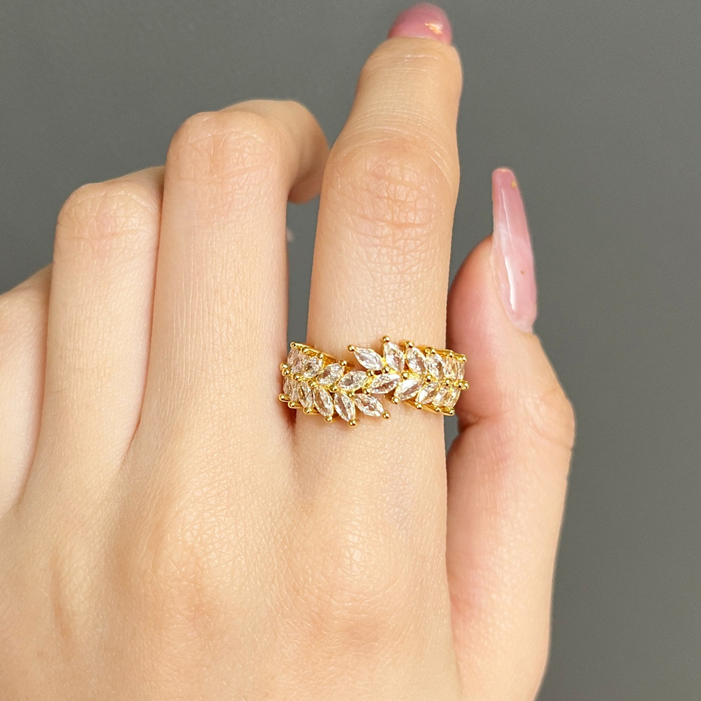 Niche design, high-end fashion, versatile index finger ring, copper-plated wheat ear ring, female ring
