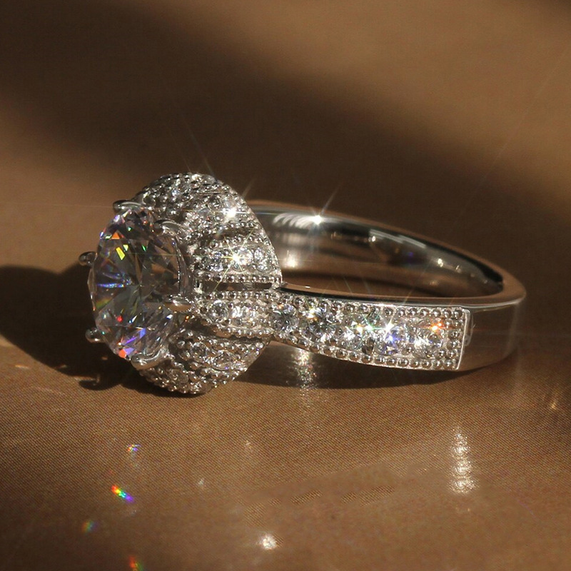 Micro-inlaid celebrity style classic all-match popular ring six-claw zircon wedding ring European and American style light luxury ring