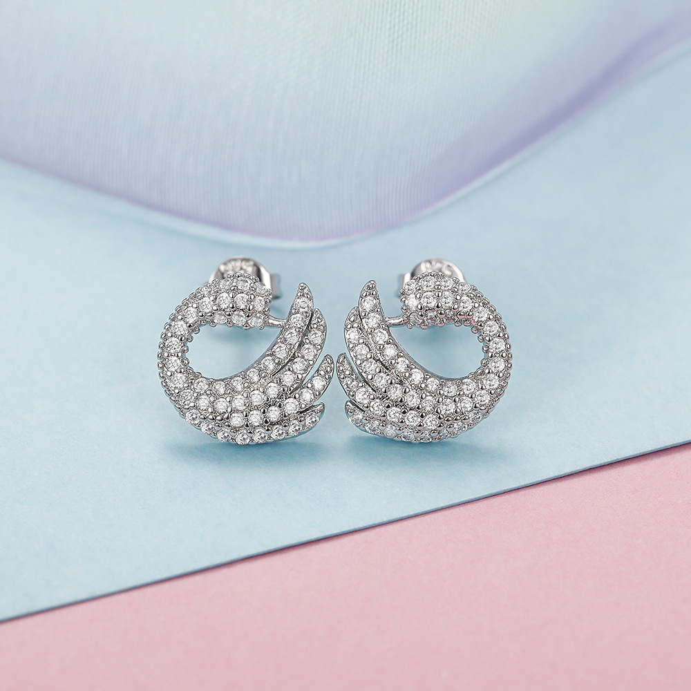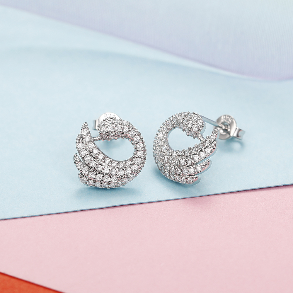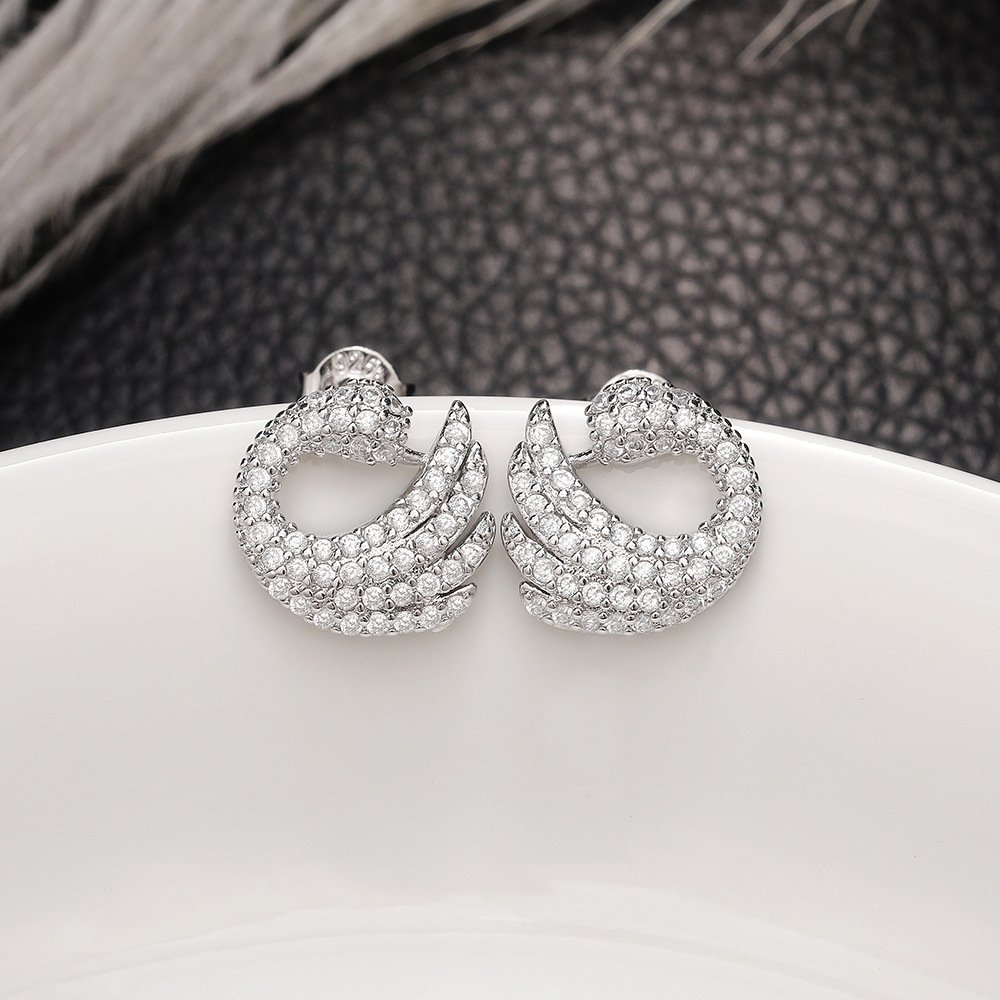Niche design swan earrings luxury full inlaid zircon mosquito coil plate animal earrings trendy women's earrings