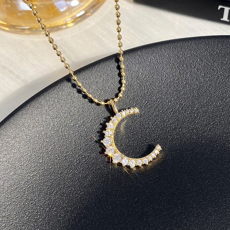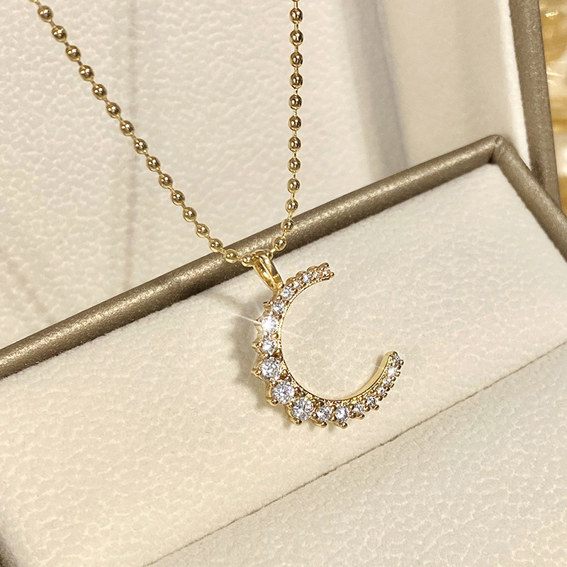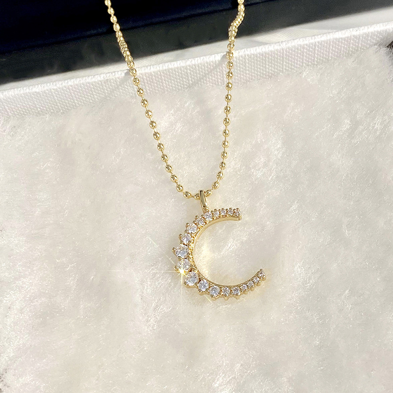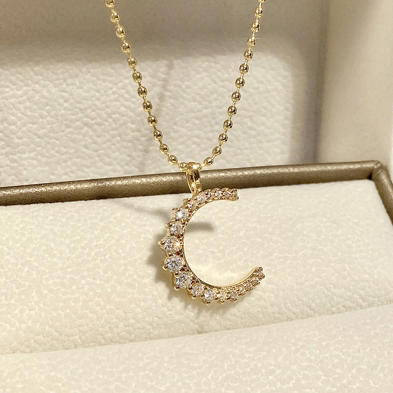 Niche simple small moon necklace light luxury high-end retro moon pendant temperament girlfriend necklace female