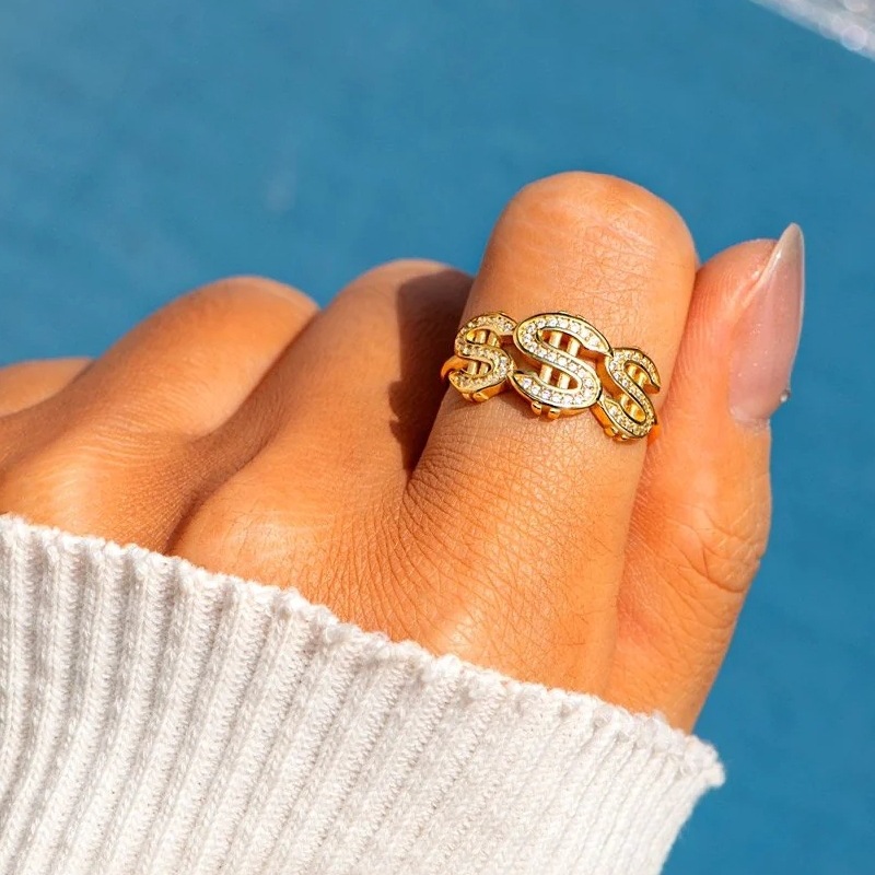 Old money style personality punk ring women's fashionable hip-hop eye-catching jewelry Internet celebrity trendy design ring