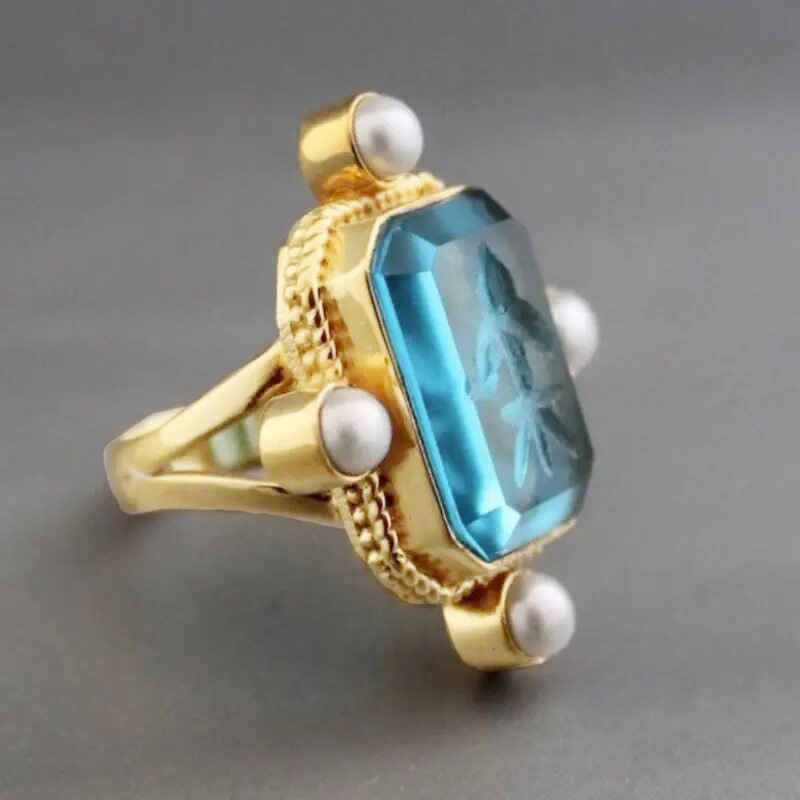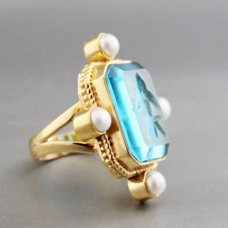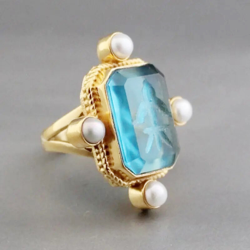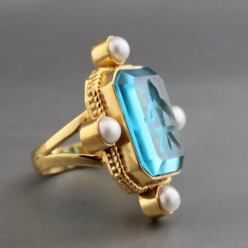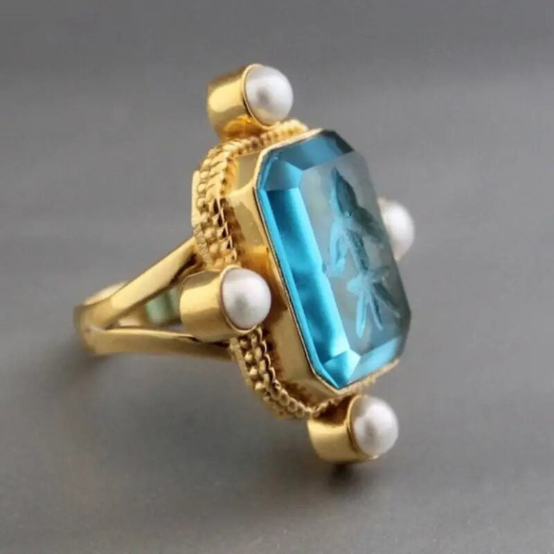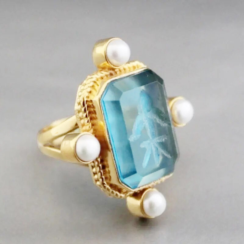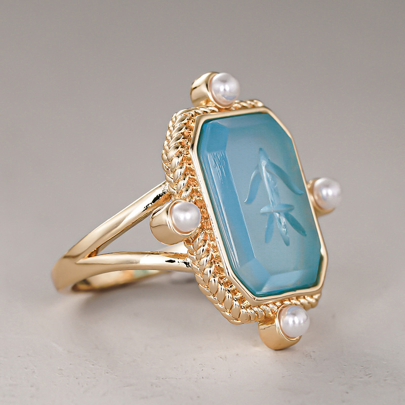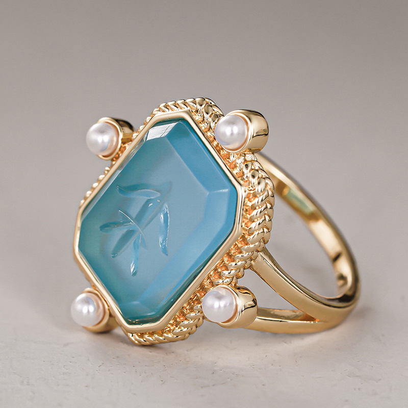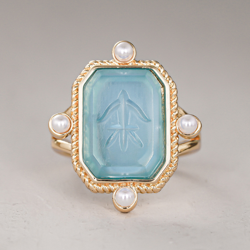 Old money style ring new Chinese style ancient style millet pearl ring acrylic high transparent ring