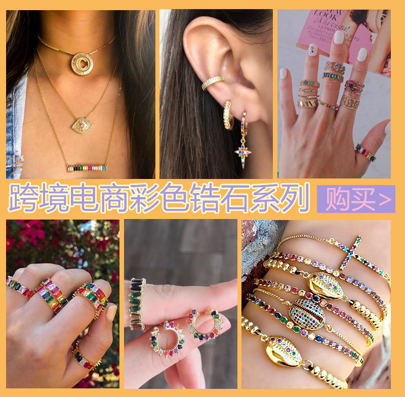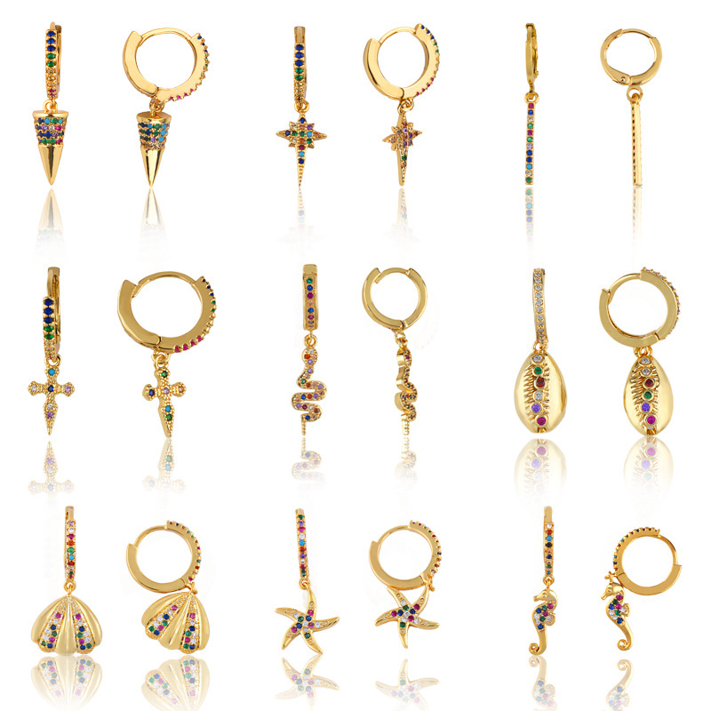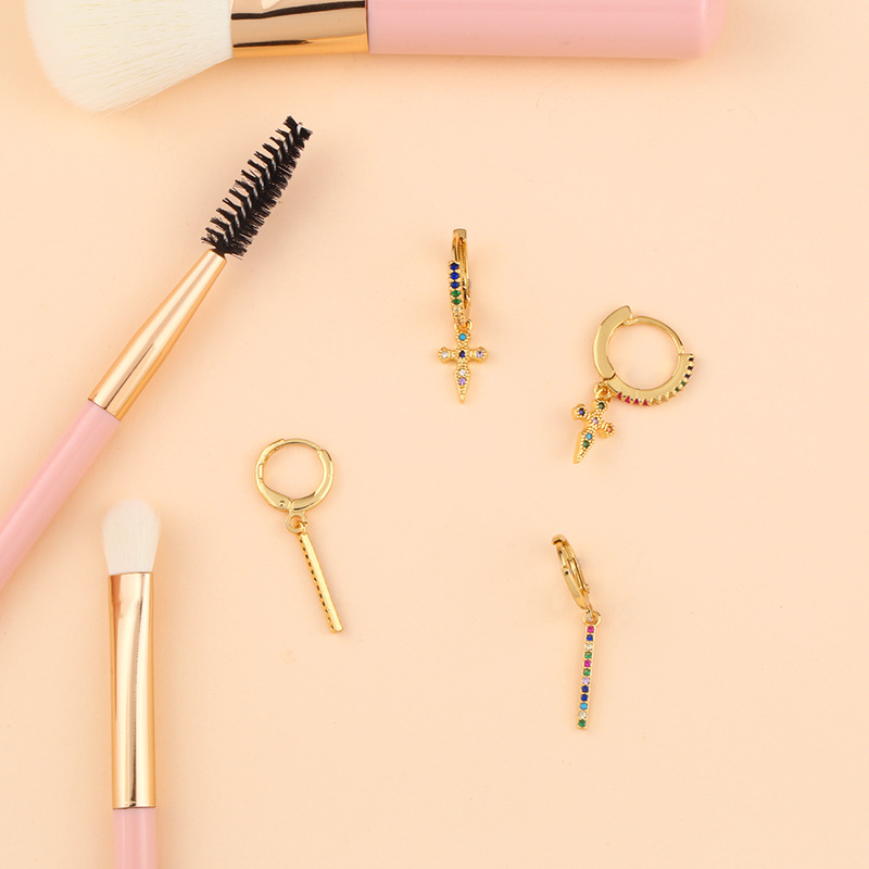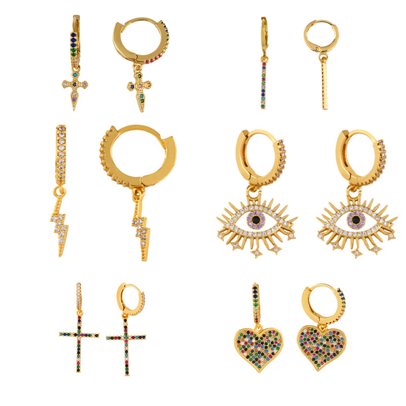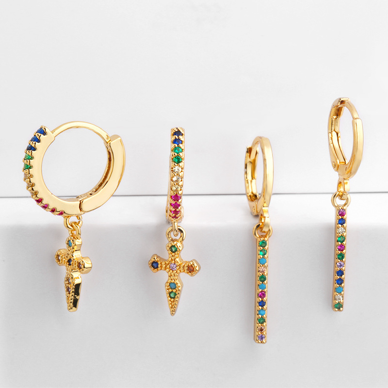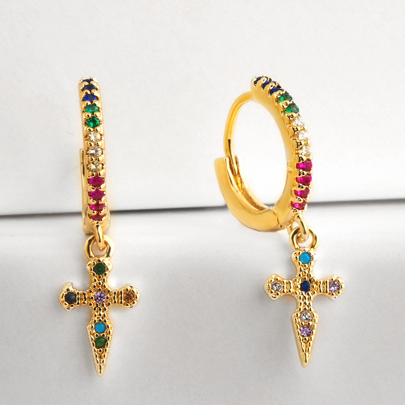 Original cross earrings, earring clips, European and American fashion, creative trendy women's earrings with colored diamonds, wholesale