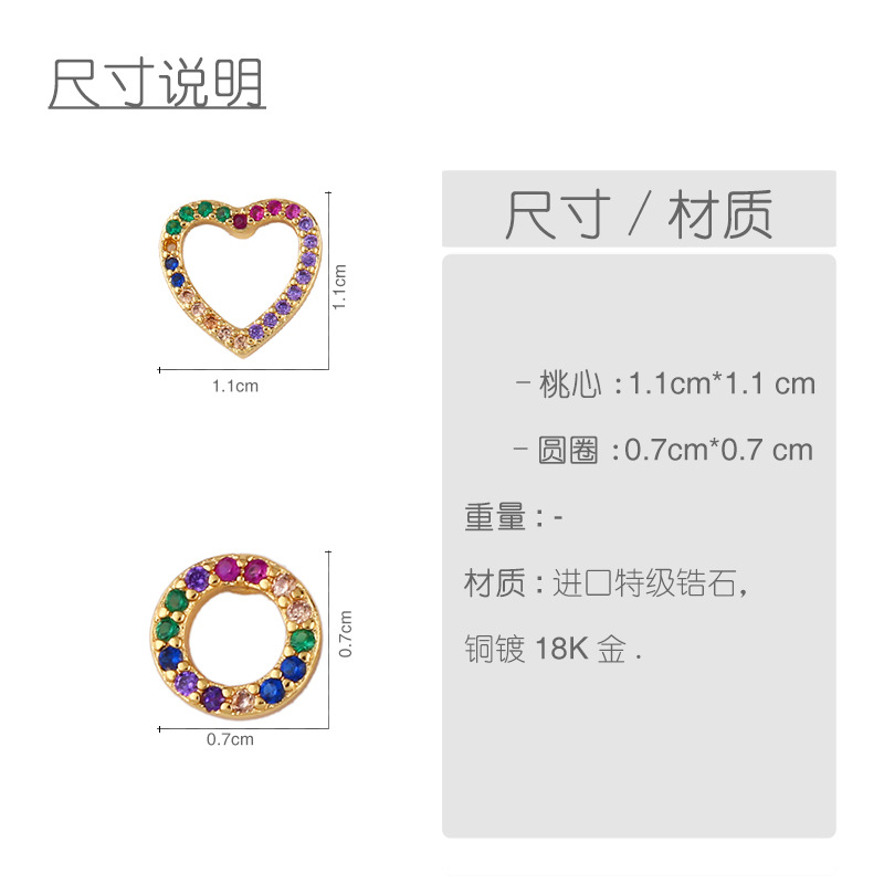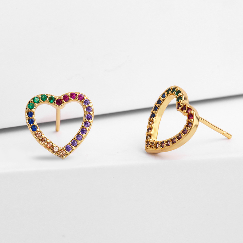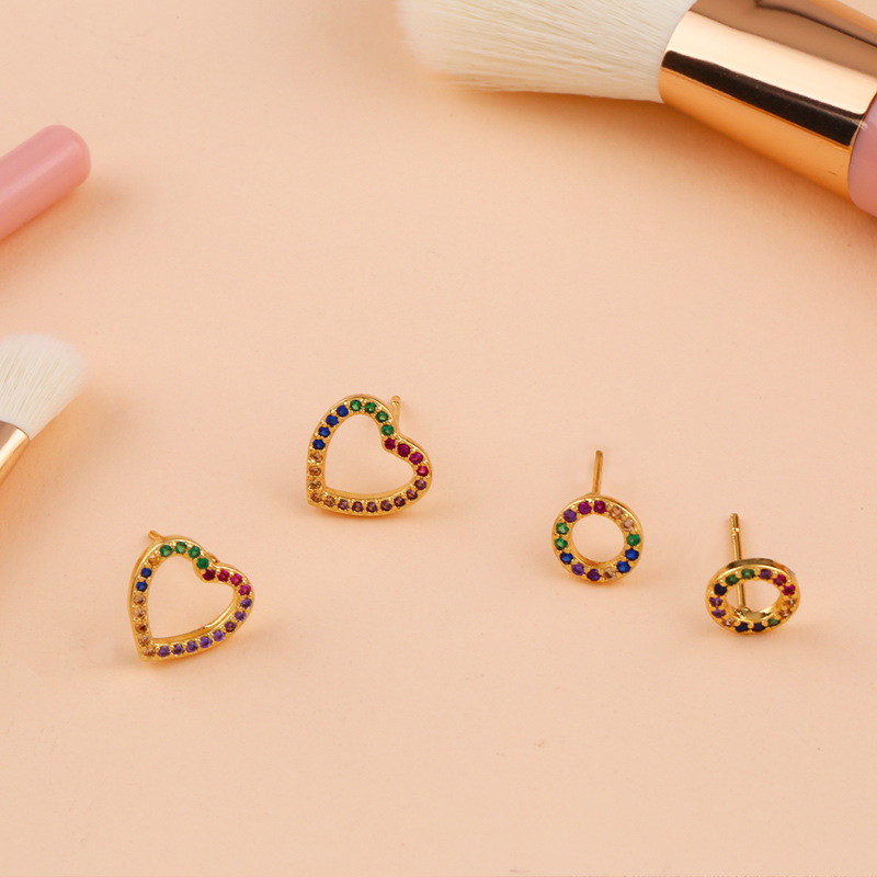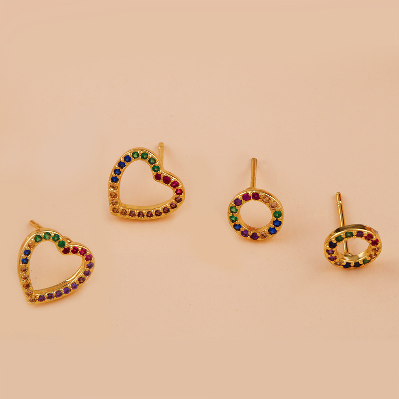 Original European and American Internet celebrity same style jewelry micro-inlaid colored zirconium earrings exquisite small heart geometric earrings wholesale