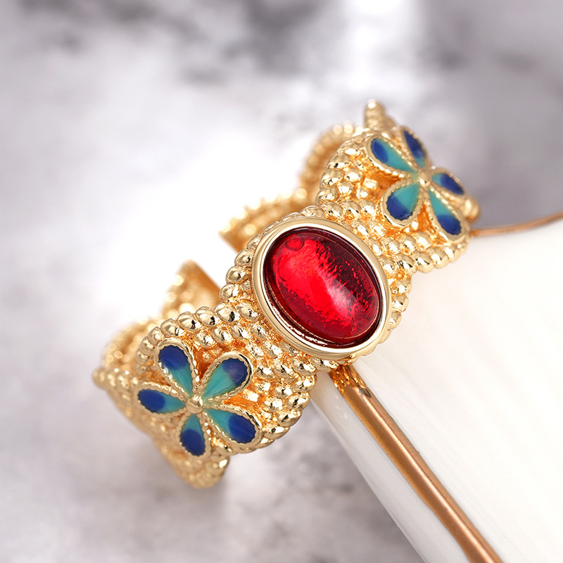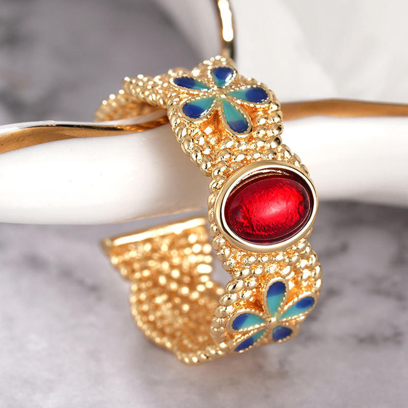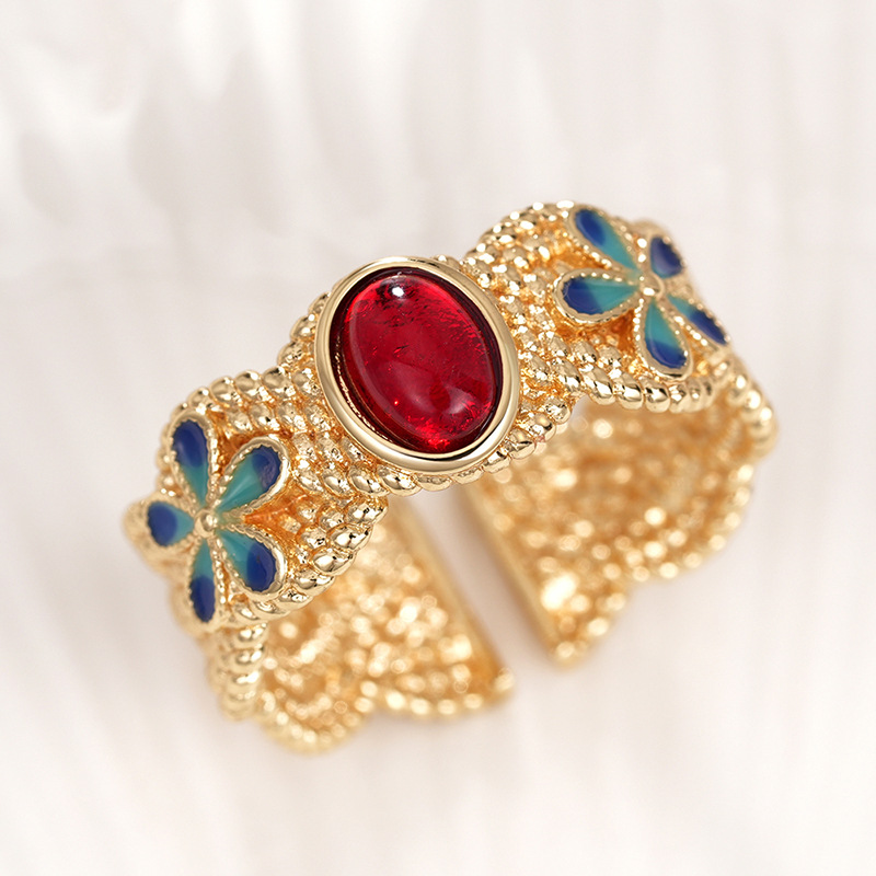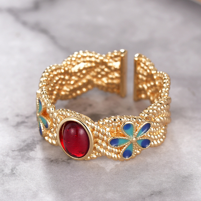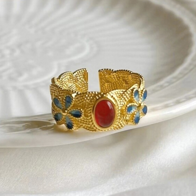 Palace high-end Middle Eastern style floral ring with adjustable opening, ethnic style, exotic niche jewelry