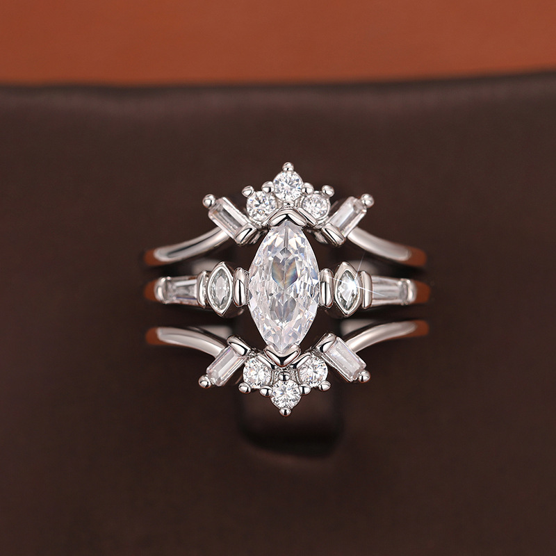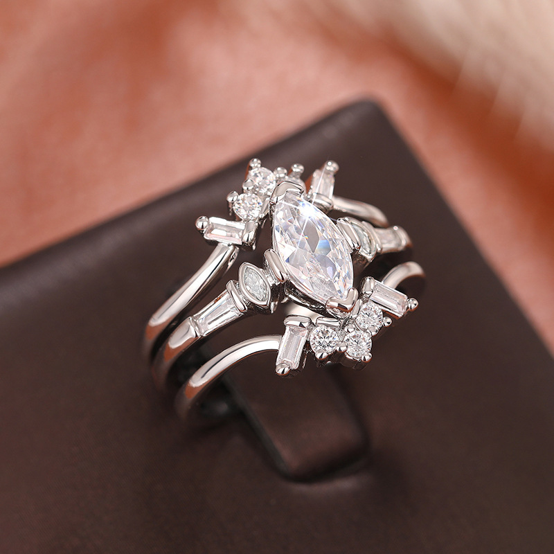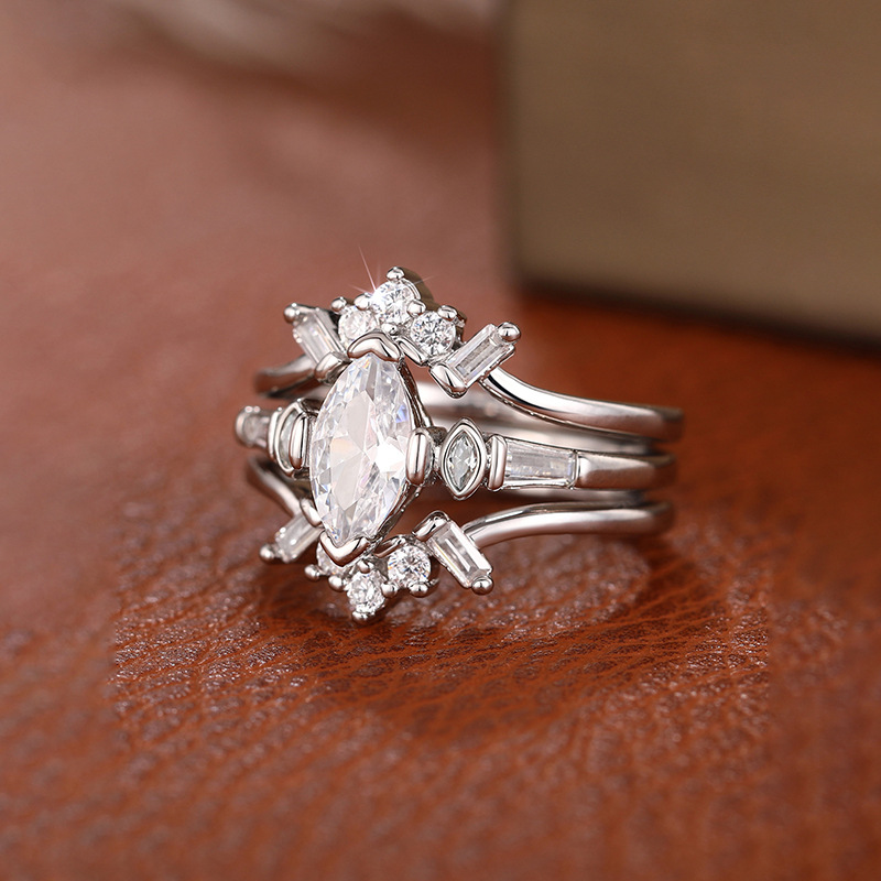 Palace luxury horse eye geometric ring three-piece set light luxury design ring female engagement wedding jewelry