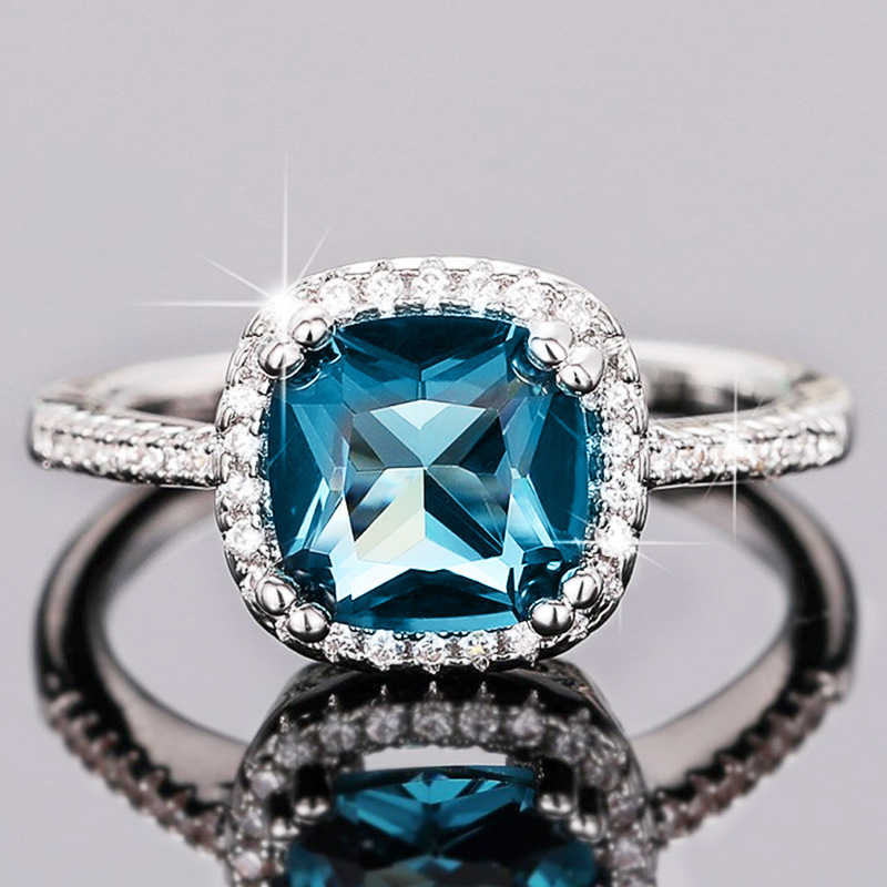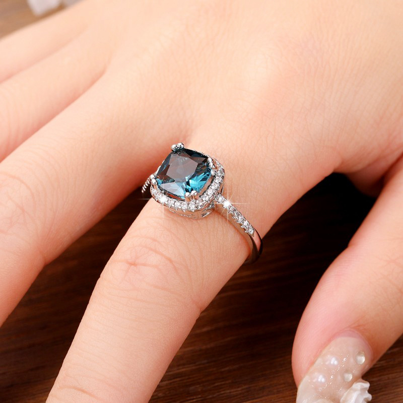 Palace retro Tanzanite blue ring temperament square royal queen ring fashion simple index finger ring