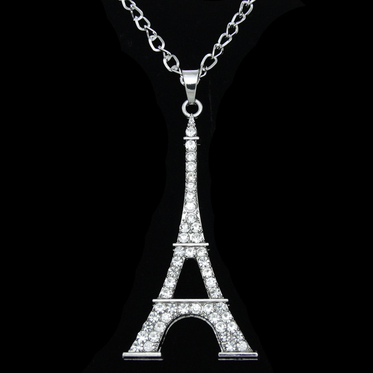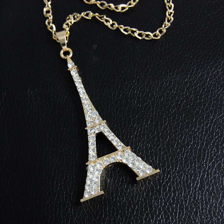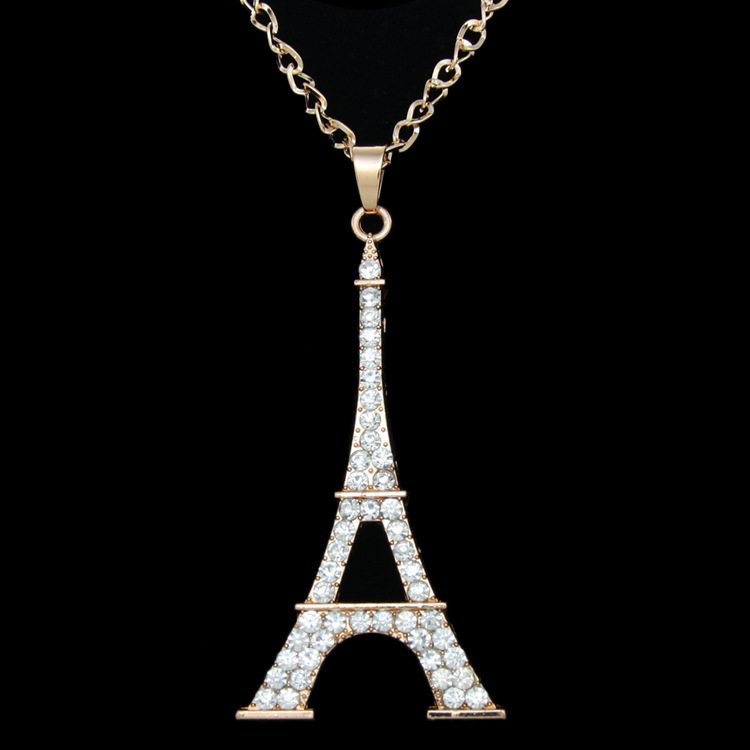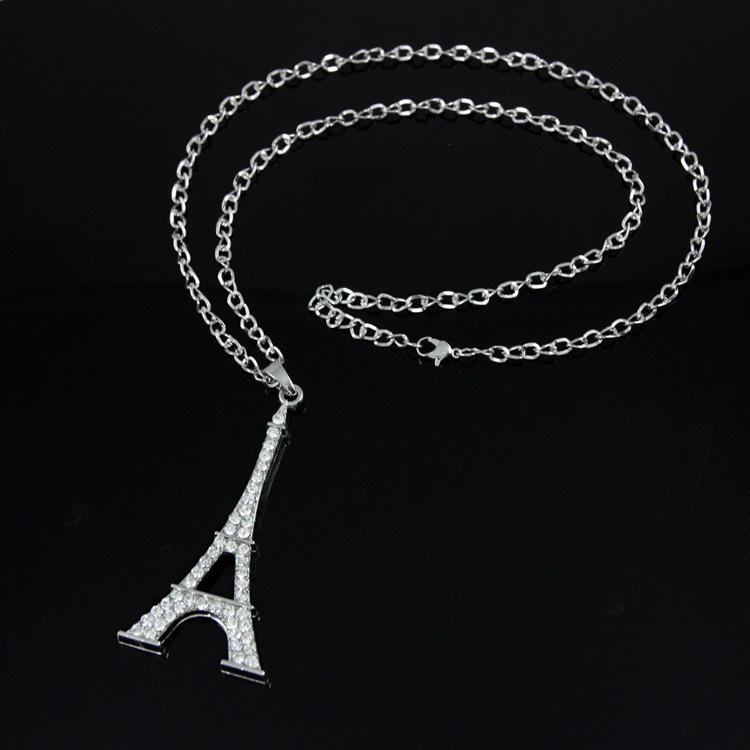 Paris Eiffel Tower all-match diamond hollow three-dimensional sweater necklace women's super flash nkm69