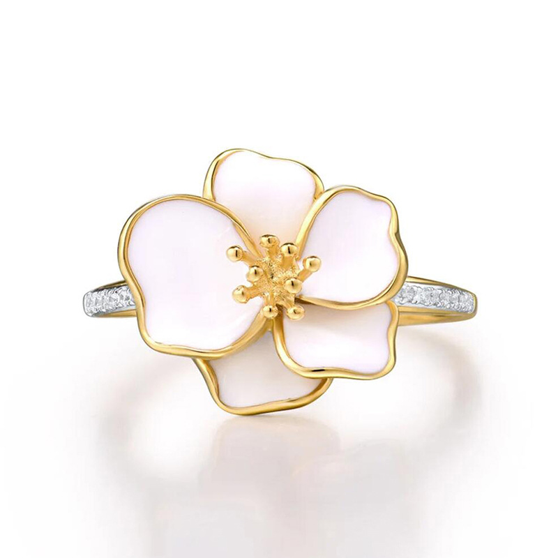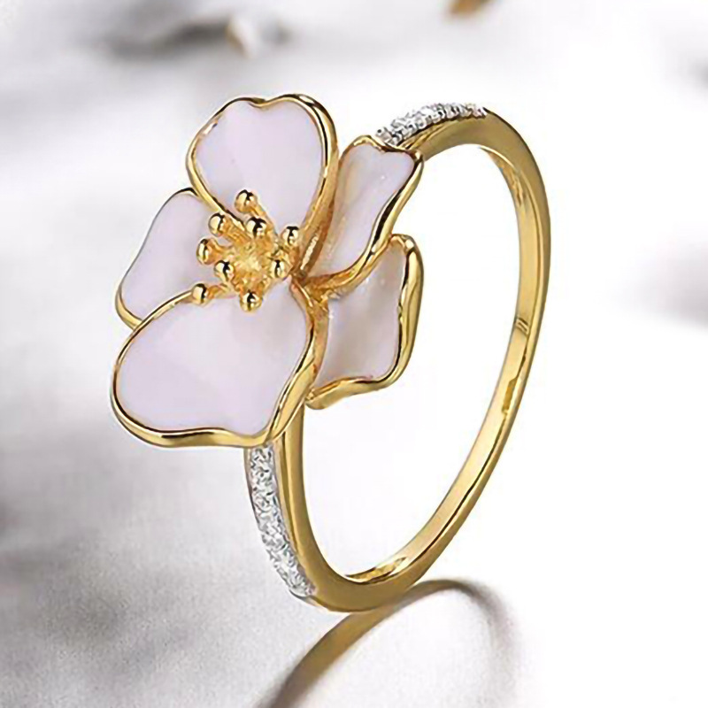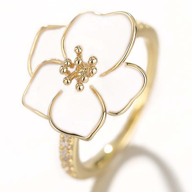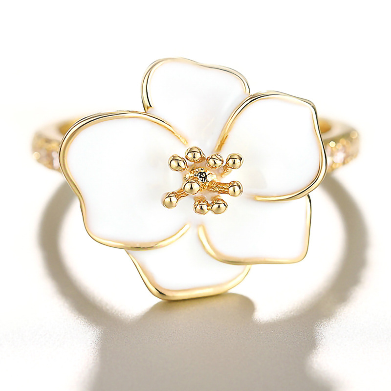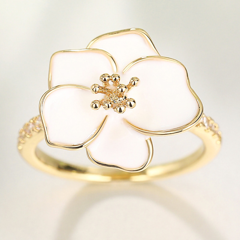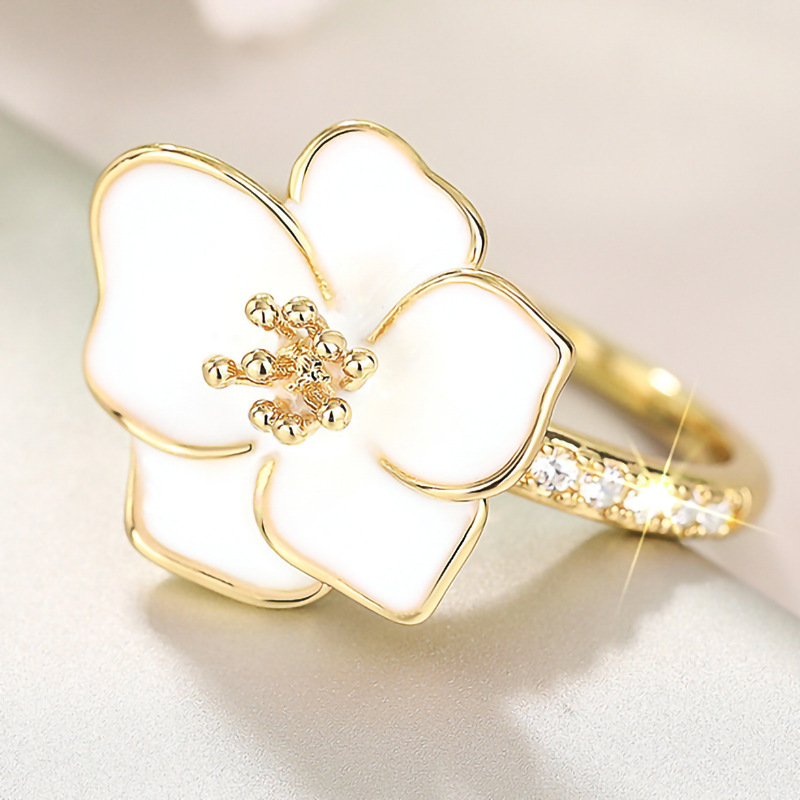 Pastoral style design camellia ring for women, micro-inlaid zircon floral ring, fashionable and sweet accessories