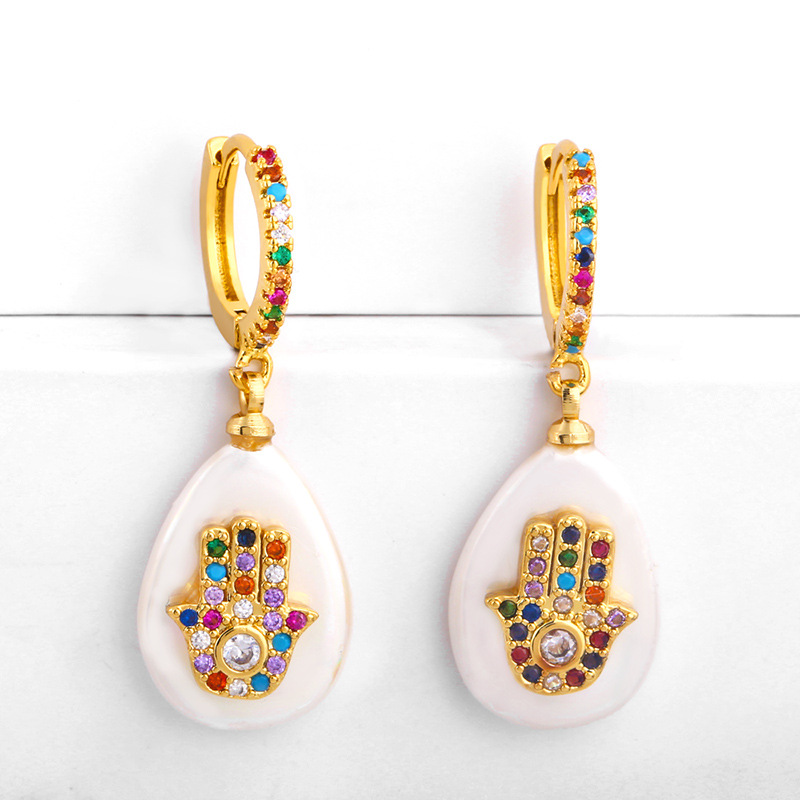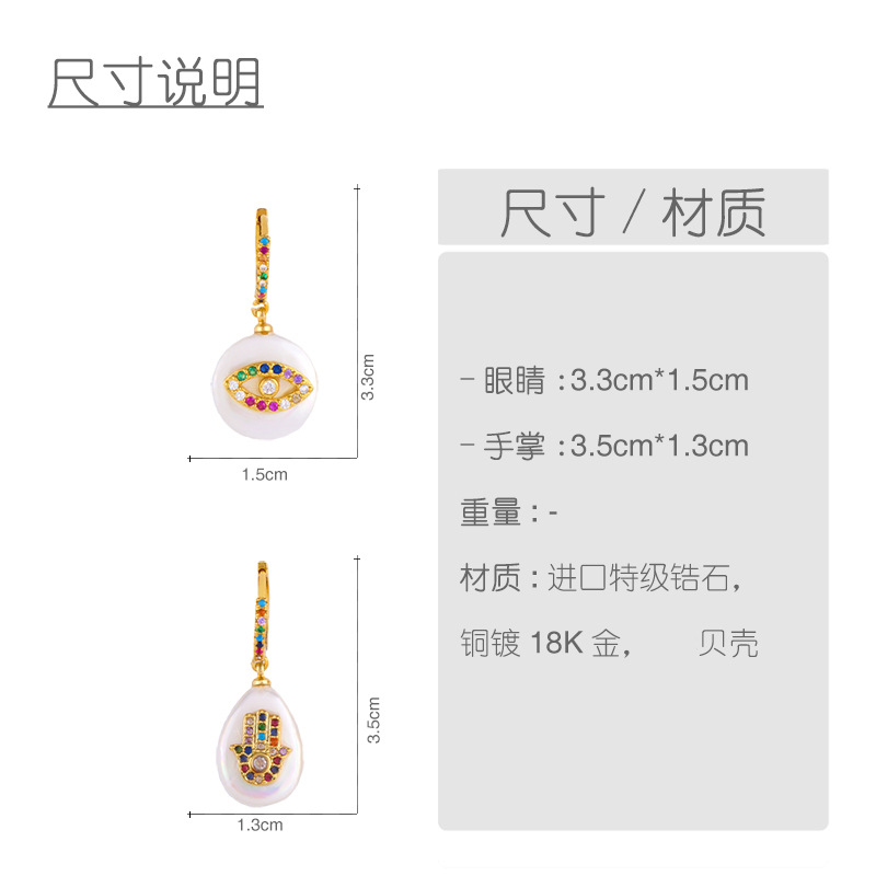 Pearl earrings European and American devil's eye micro-inlaid colored diamond earrings water drop round geometric earrings female err52