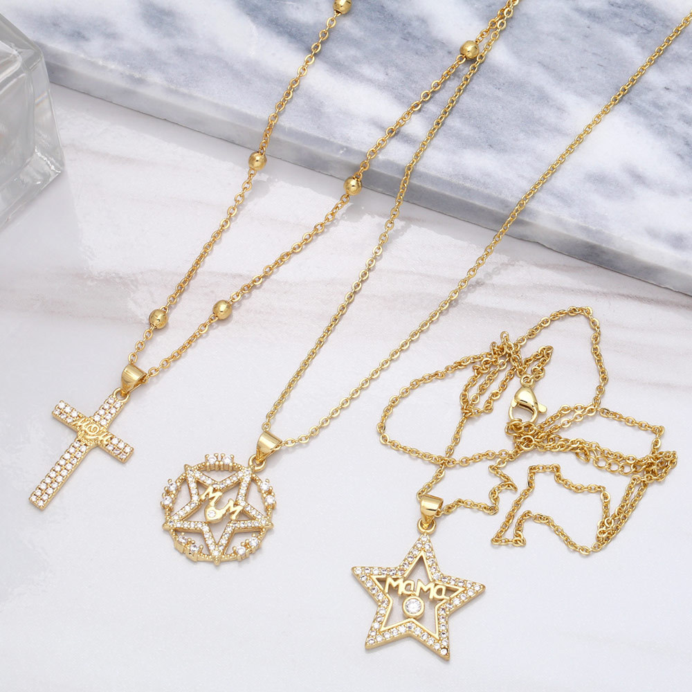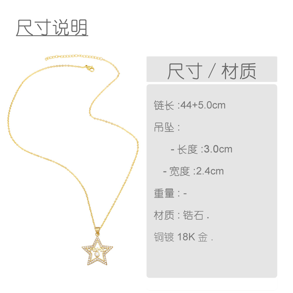 Pentagram necklace clavicle chain temperament simple light luxury niche design diamond letter MOM necklace female nkb043