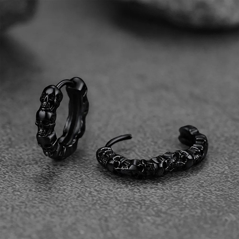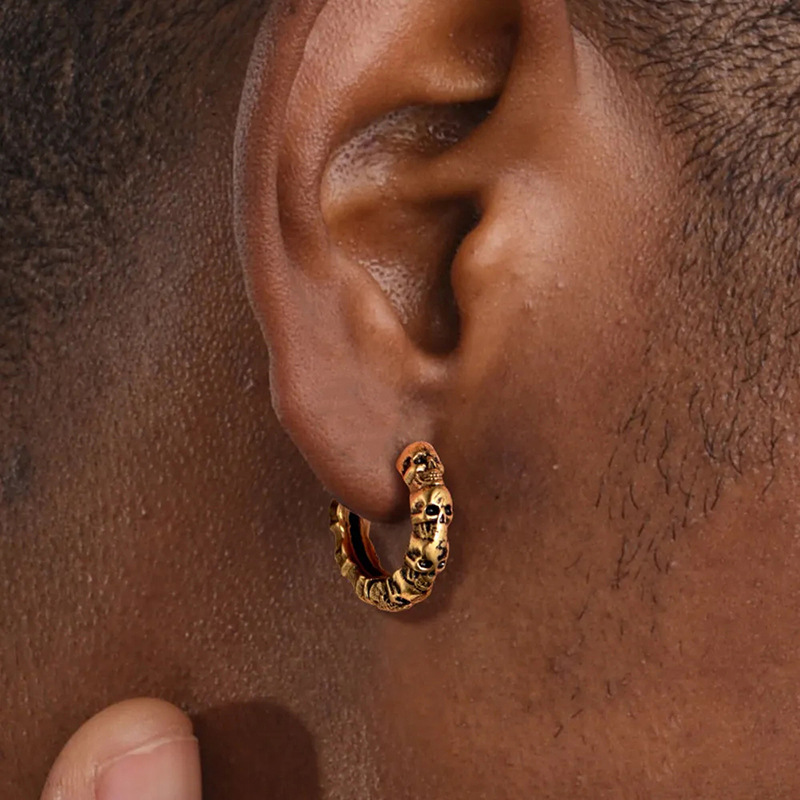 Personalized European and American men's earrings, street hip-hop handsome American earrings, skull retro texture earrings