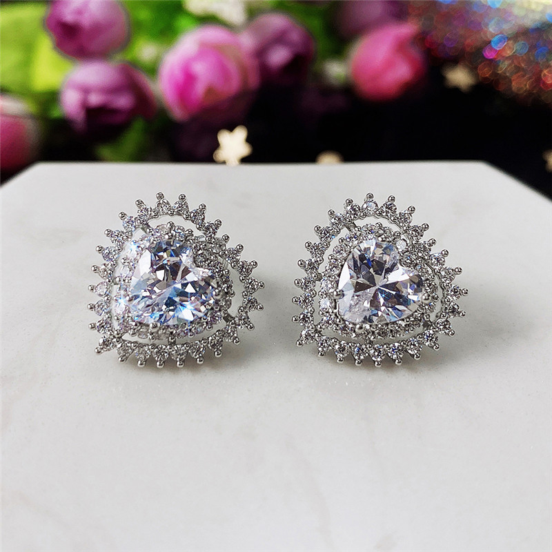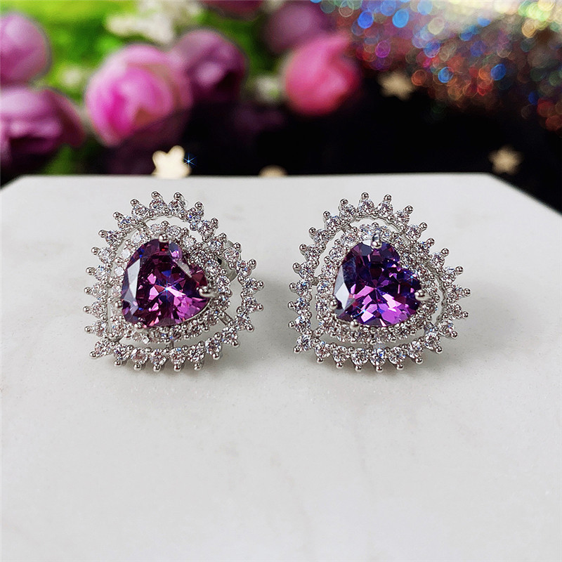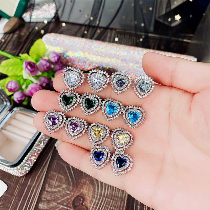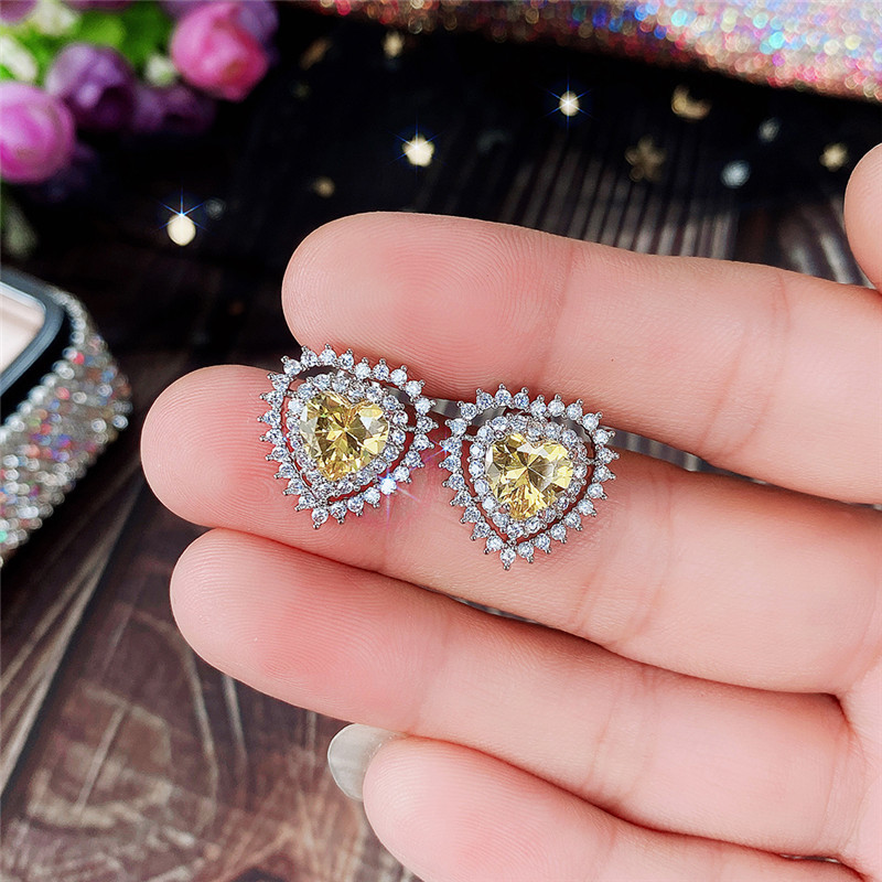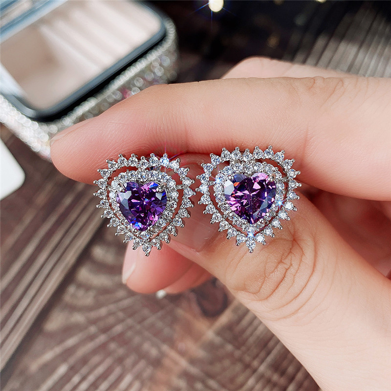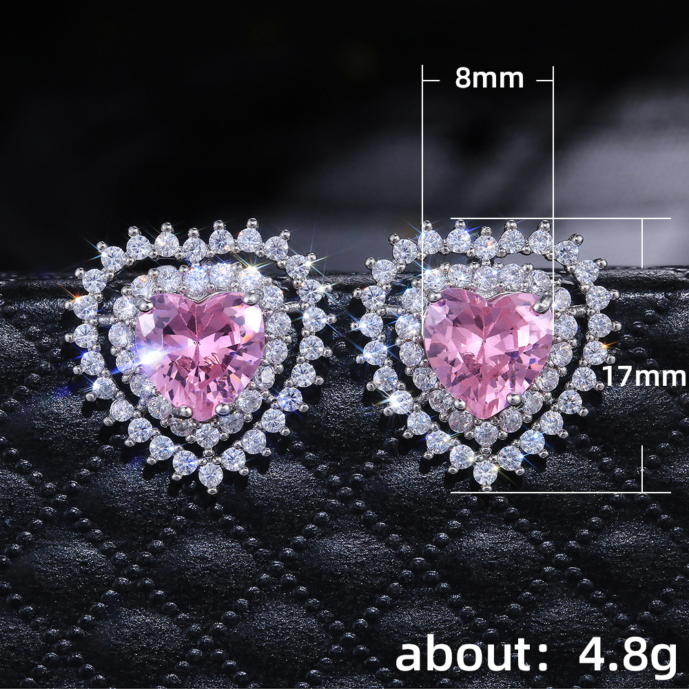 Personalized girls peach heart earrings earrings forest style all-match zircon heart internet celebrity same style earrings wholesale